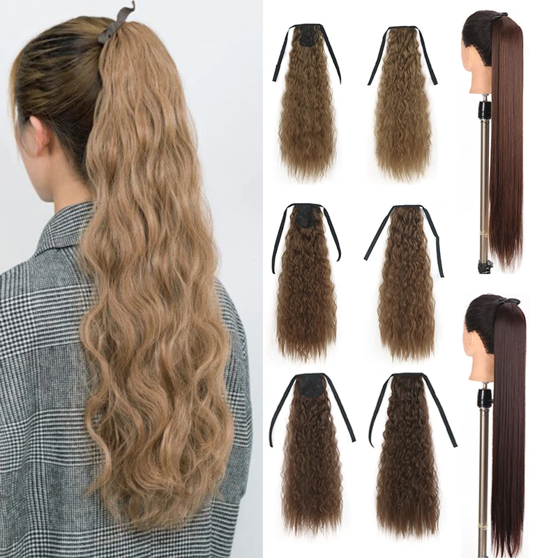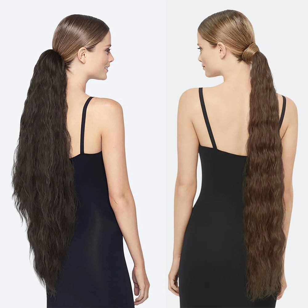 Кукурузная волна конский хвост синтетическая поддельная повязка для наращивания волос черная Хвостовая блондинка термостойкая Дамская очень длинная