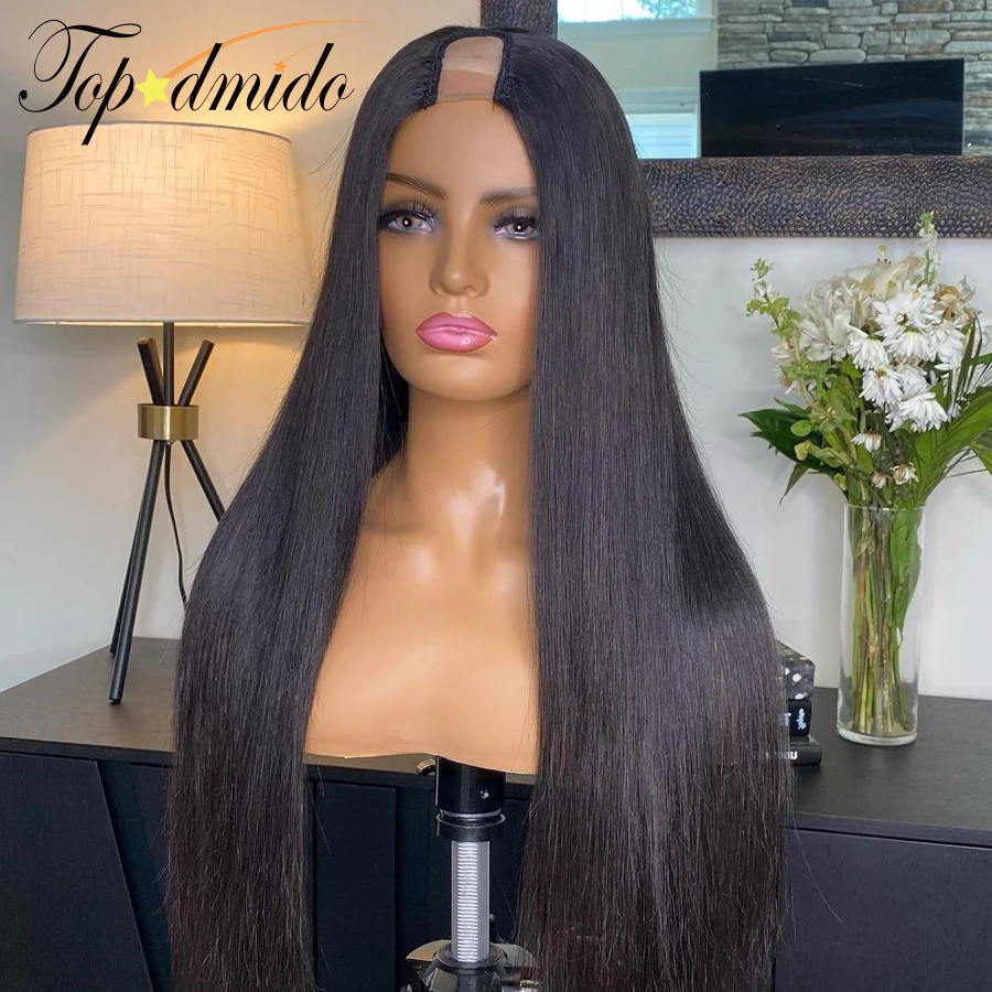 Topodmido длинные прямые человеческие волосы U-образные парики для женщин бразильские волосы Remy U-образные парики 150% плотность волнистые безклеевые парики