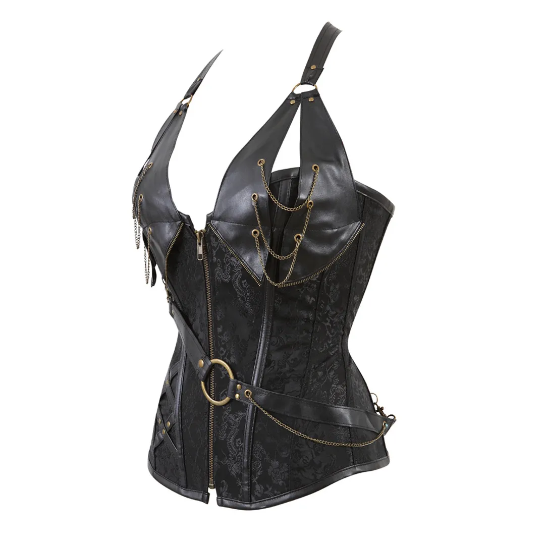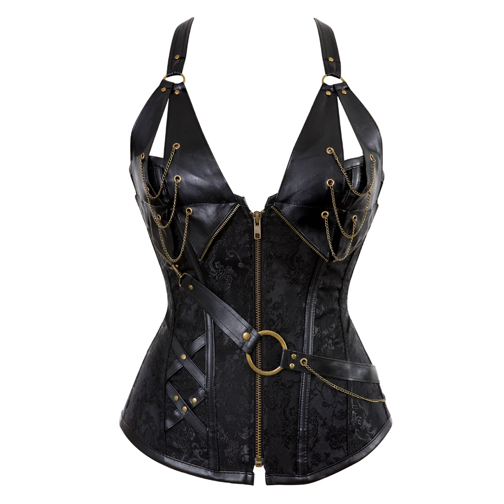 Стимпанк Корсеты и бюстье Холтер размера плюс корсет из искусственной кожи Готический Панк корсет на молнии баска в стиле бурлеск сексуальный костюм