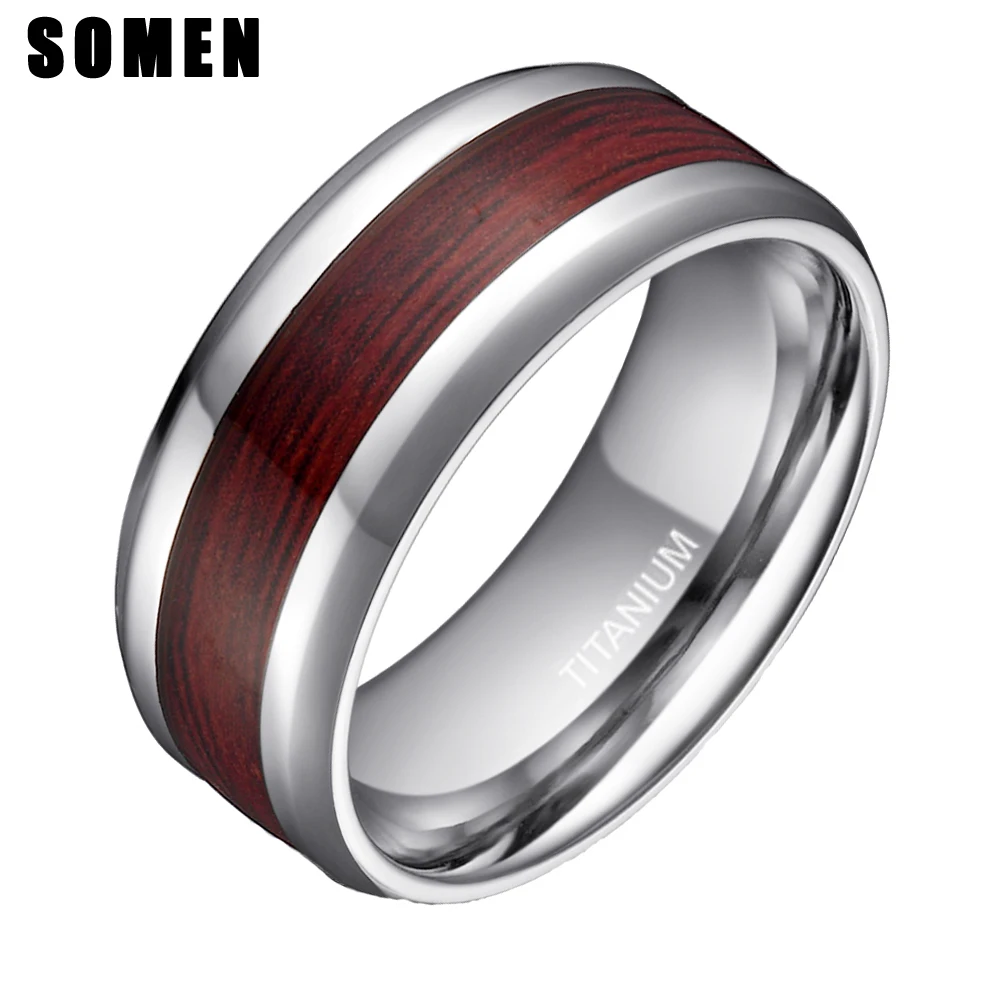 Мужское обручальное кольцо Somen 8 мм из титана с инкрустацией из натуральной древесины, модное обручальное кольцо с деревянным покрытием для мужчин, американские размеры 5 - 14