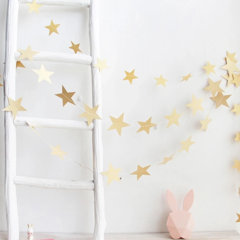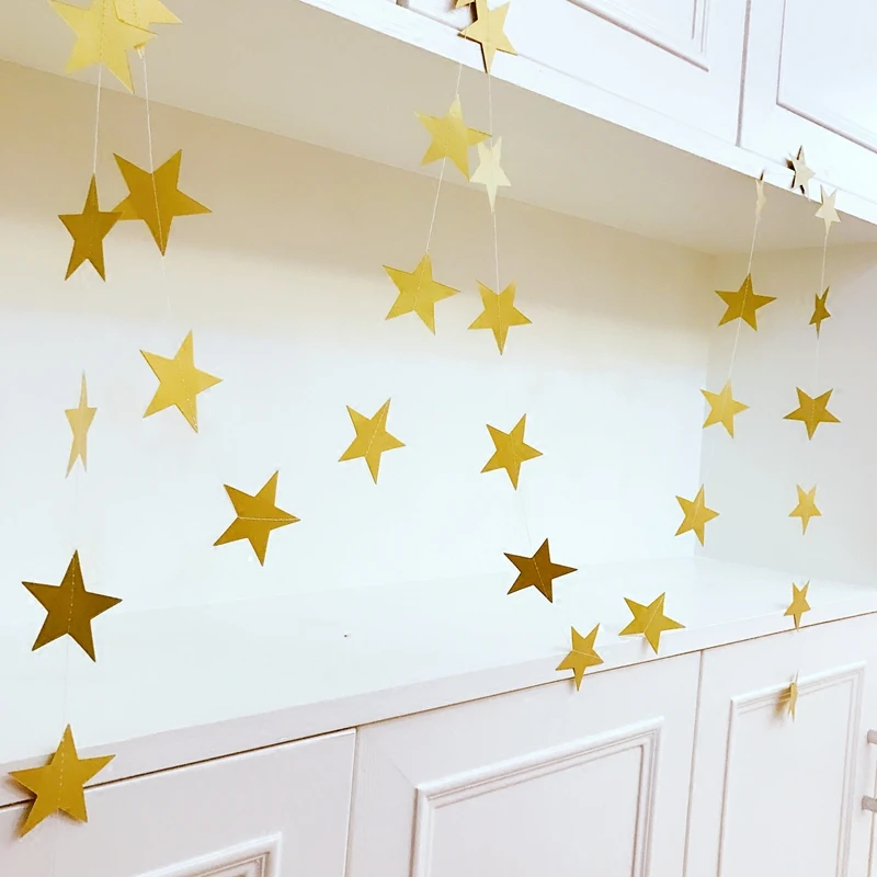 Яркая Золотая Звезда на день рождения, гирлянда, свадебный фон, украшения для спальни для девочек, 1 шт., 4 м