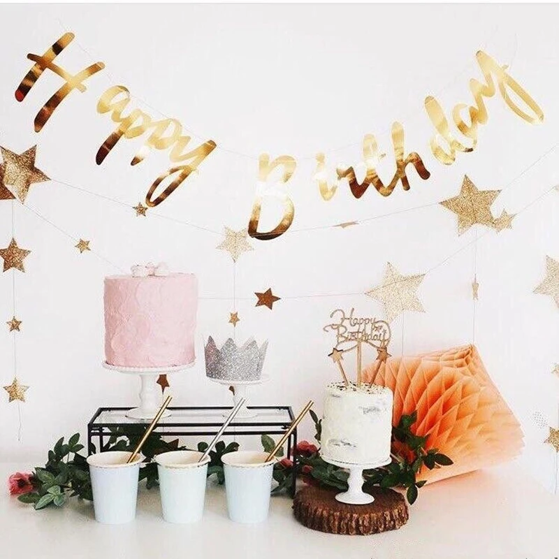 1 шт. 4 м с днем рождения яркая Золотая звезда День рождения декоративная бумага для вечеринок гирлянды свадебные украшения для экрана Аксессуары для девочек Декор для спальни
