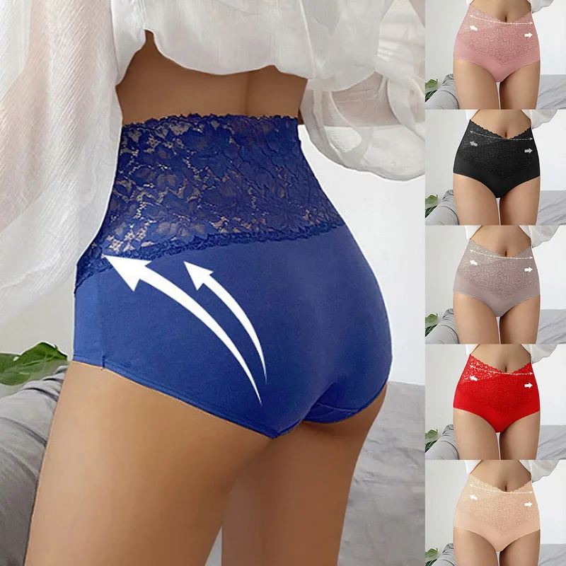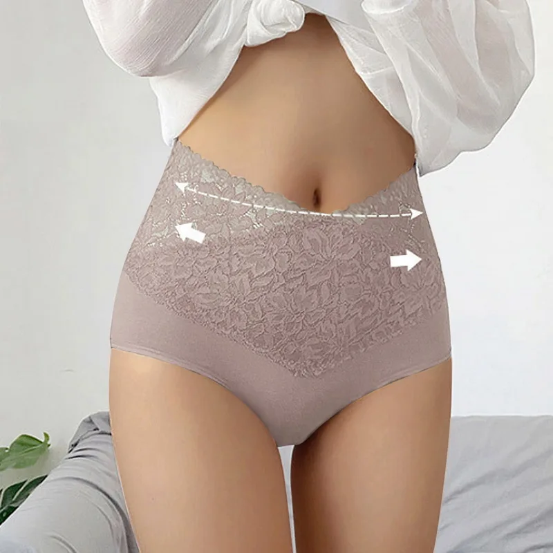 Бесшовные облегающие трусики для живота, кружевные трусики с высоко...