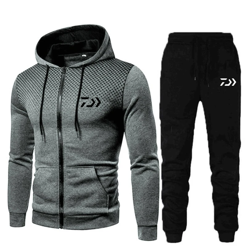Мужской спортивный костюм, толстовка с капюшоном и штаны на молнии,...