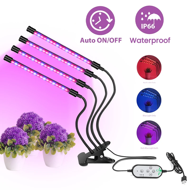 Светодиодсветильник фитолампа полного спектра с USB, 5 В, 4 головки