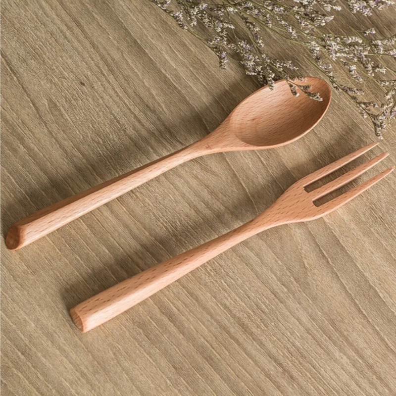 Деревянная ложка-вилка, Бамбуковая кухонная утварь, инструменты для приготовления пищи, суповая чайная ложка, подходящие хлопья и десерты для перемешивания питьевой еды