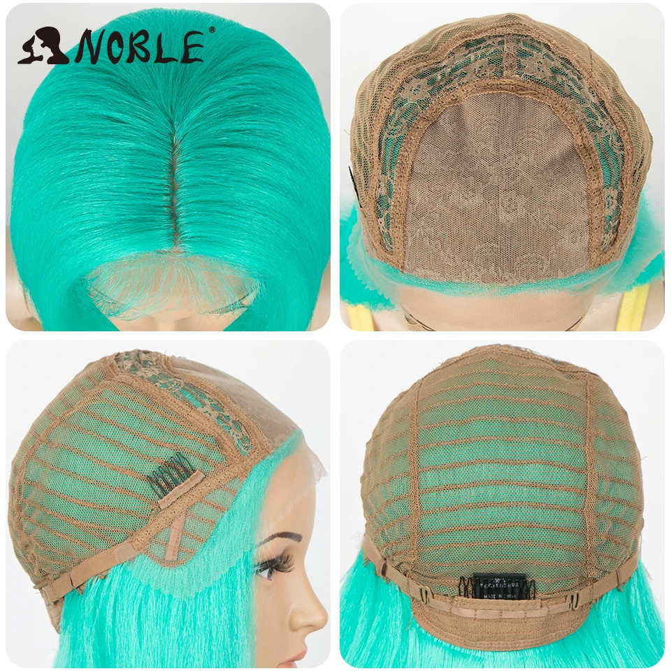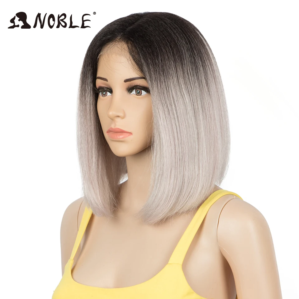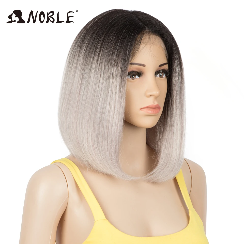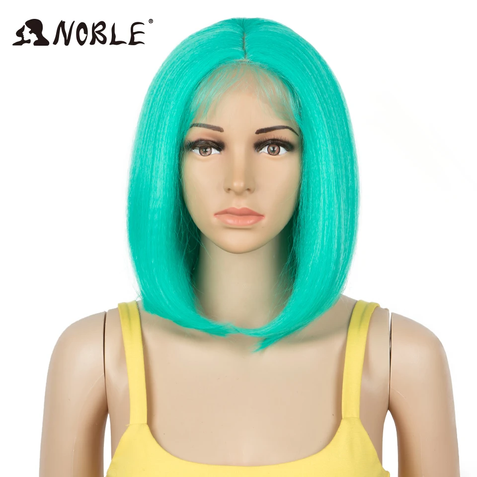 Благородный парик из синтетических кружевов, короткие волосы с эффектом омбре, прямые зеленые волосы 10-12 дюймов, синтетический парик, блонд, парик для чернокожих женщин