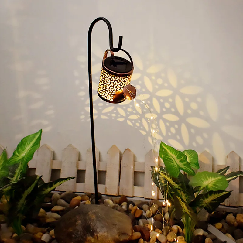 Уличное художественное освещение на солнечной батарее, украшение для садоводства, украшение для дома, сада, звезды, чайники, Декоративная гирлянда, светодиодная лампа с отверстиями для железного душа