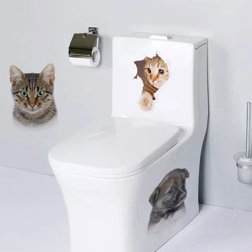 Милый 3D кошка стикер для туалета, ванной комнаты крышка для унитаза стикеры 3D настенные наклейки животных аксессуары для туалета удовольствие для домашнее украшение ванной комнаты