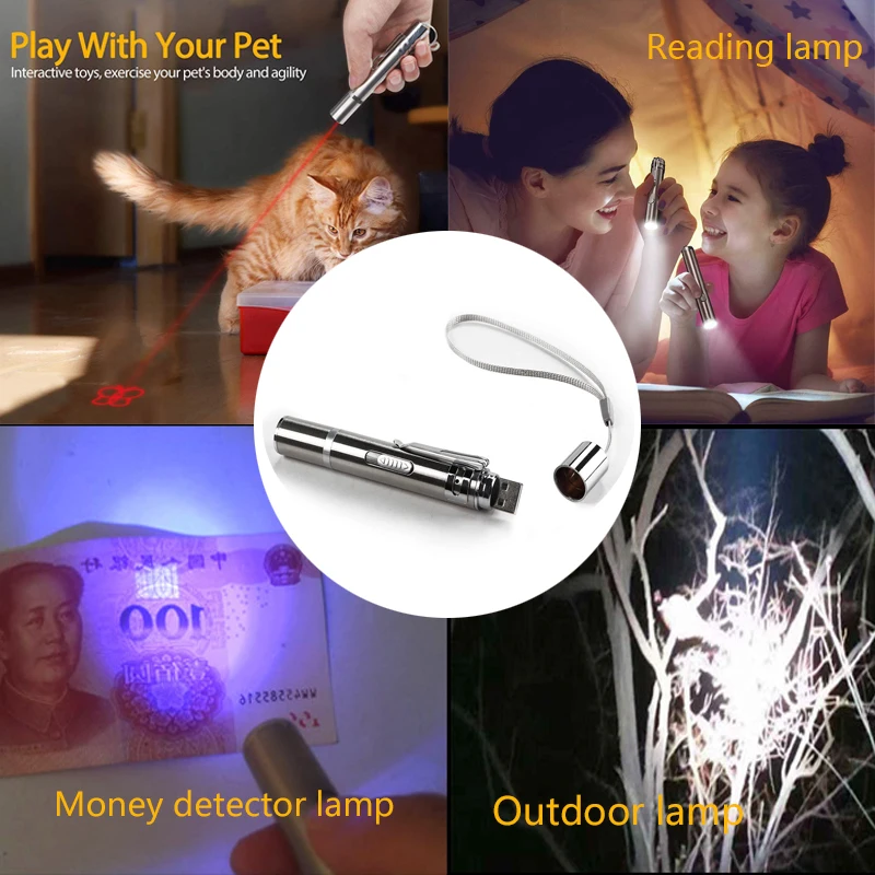 3 в 1, забавная лазерная указка с USB-зарядкой и фонариком