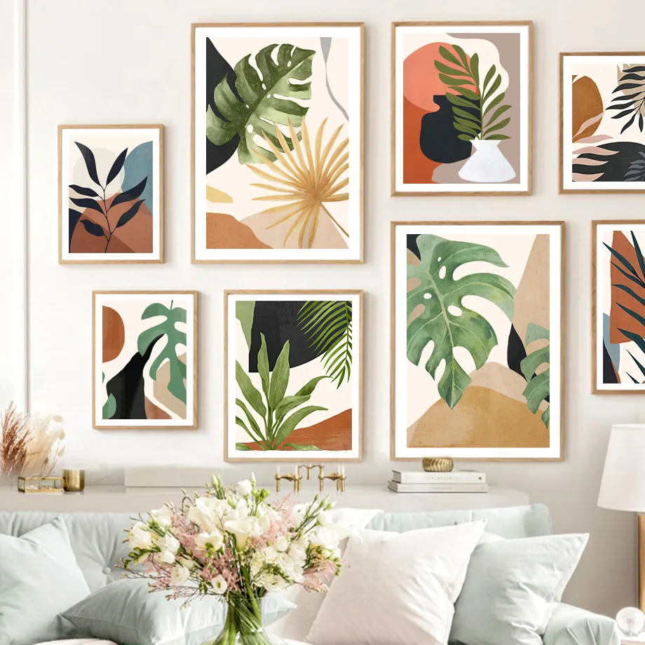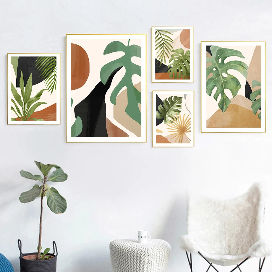 Абстрактная монстерская листва Бохо интерьерное растение Настенная ...