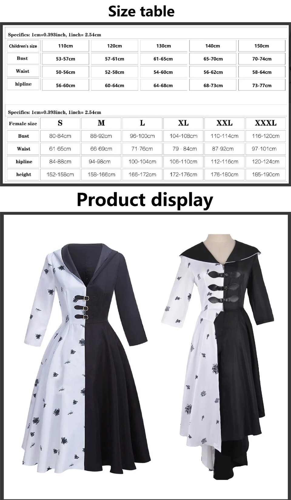Женский костюм горничной Cruella De Vil, черно-белый костюм горничной с перчатками, Искусственные парики, наряды для хэллоуивечерние НКИ