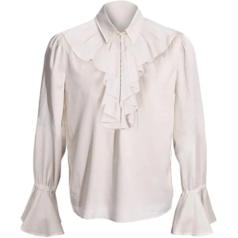 Мужская винтажная рубашка с оборками на воротнике, в стиле ретро