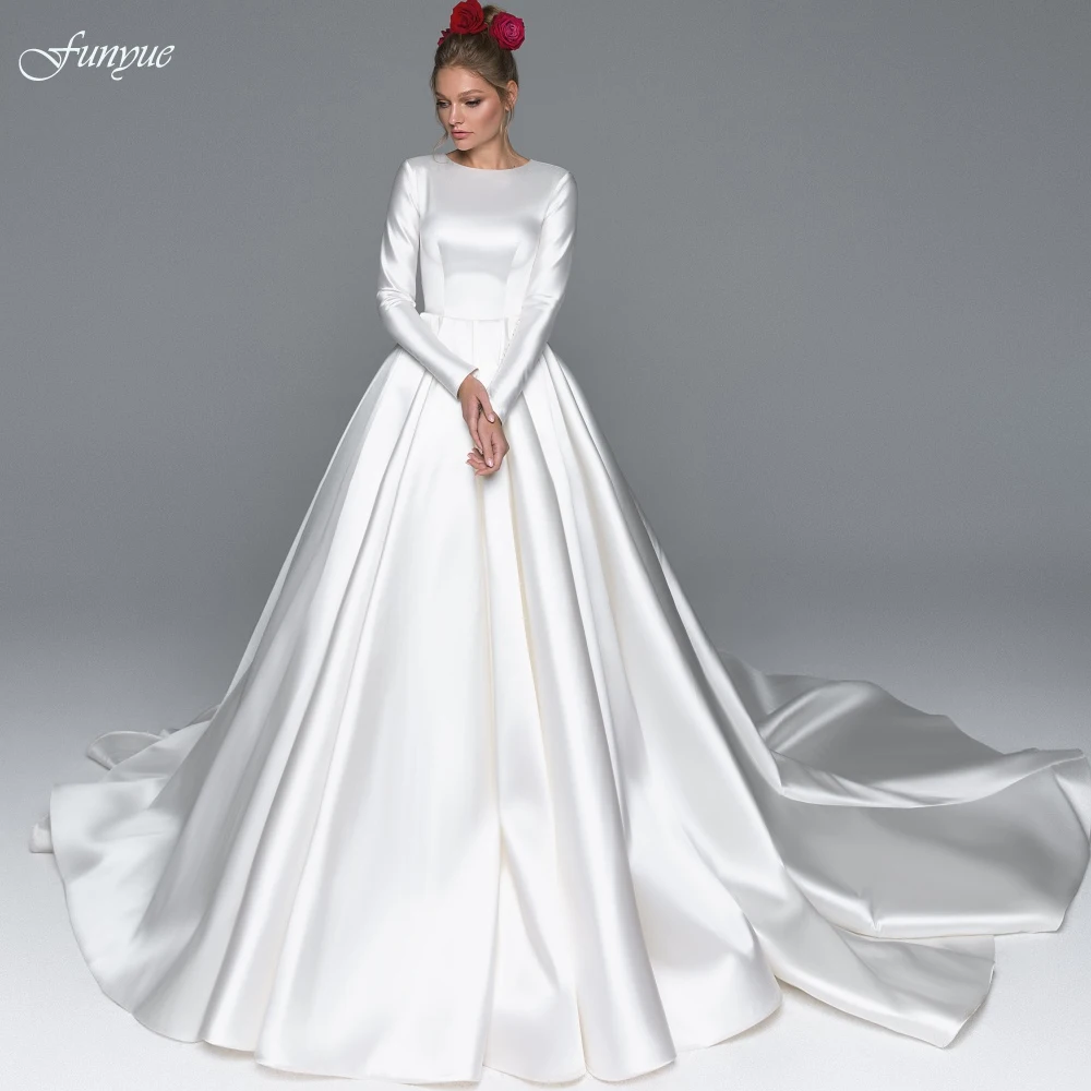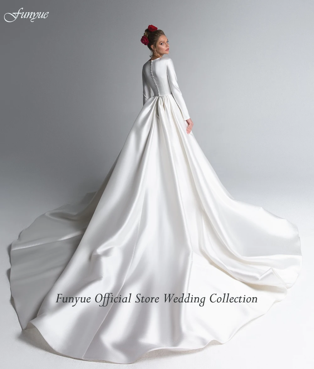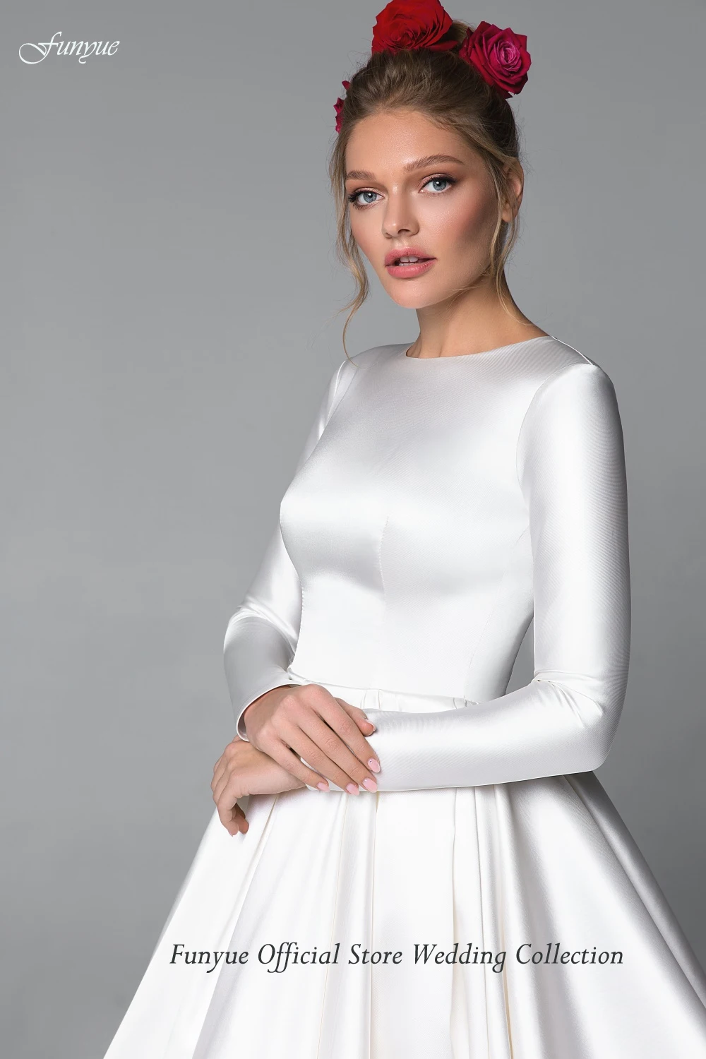 Элегантное мусульманское свадебное платье Funyue с длинным рукавом роскошное атласное платье со шлейфом для часовни великолепное бальное платье для невесты женское свадебное платье