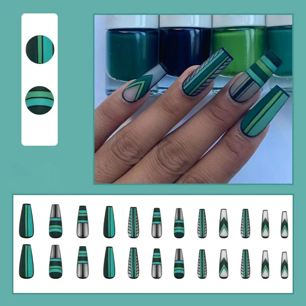 24 шт., темно-зеленые накладные ногти с геометрическим узором