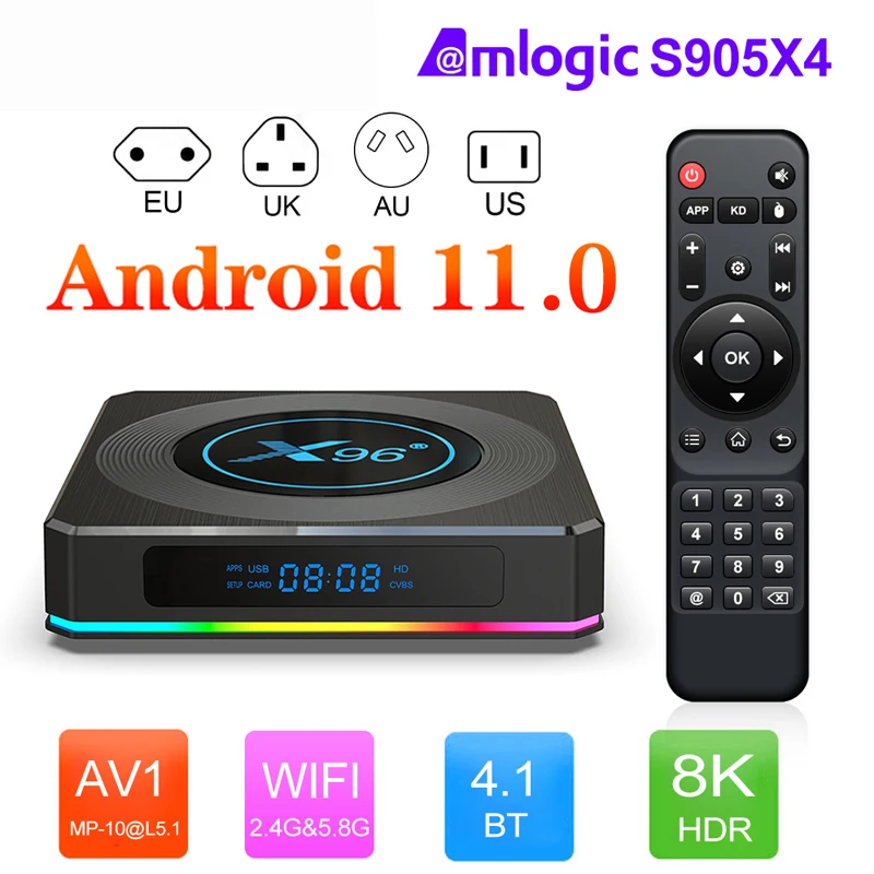 ТВ-приставка X96 X4 Amlogic S905X4 RGB с подсветкой, Android 11, 4 ГБ, 64 Гб, поддержка AV1, видео 8 к, 100 м, Wi-Fi, BT, Youtube, медиаплеер, ТВ-приставка