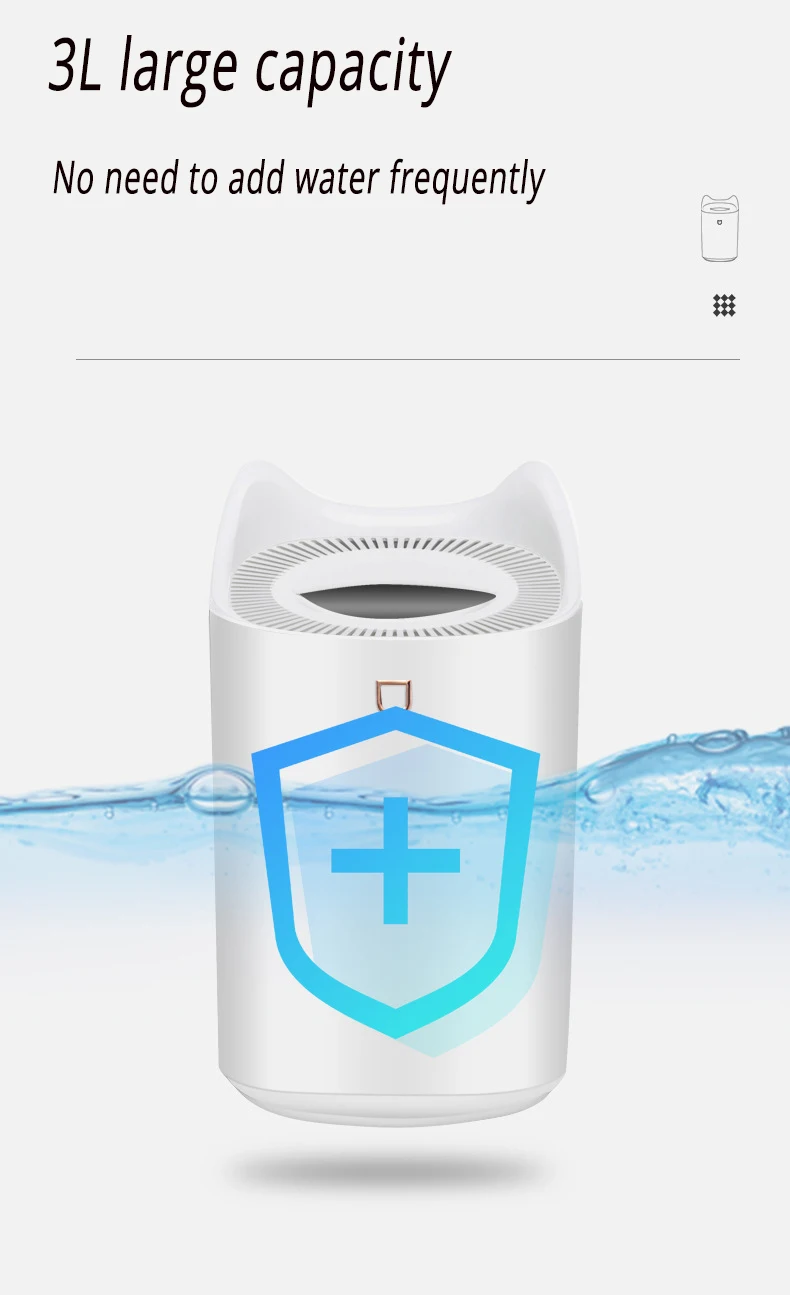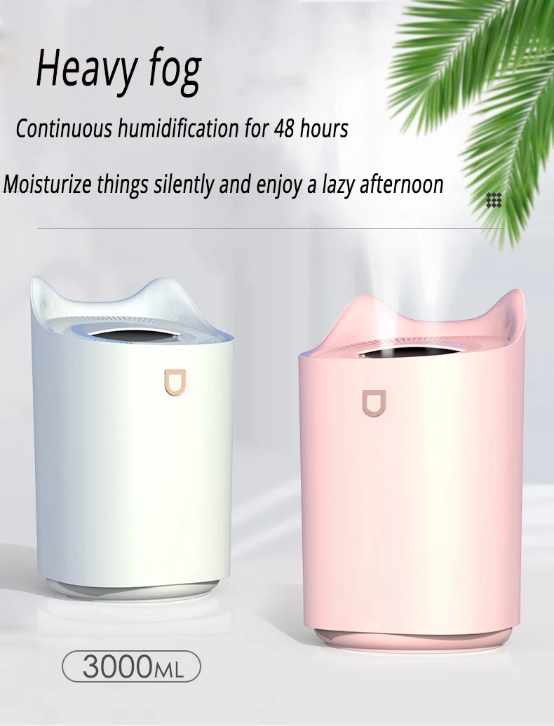 Увлажнитель-распылитель воздуха, 3000 мл, USB, LED-лампа