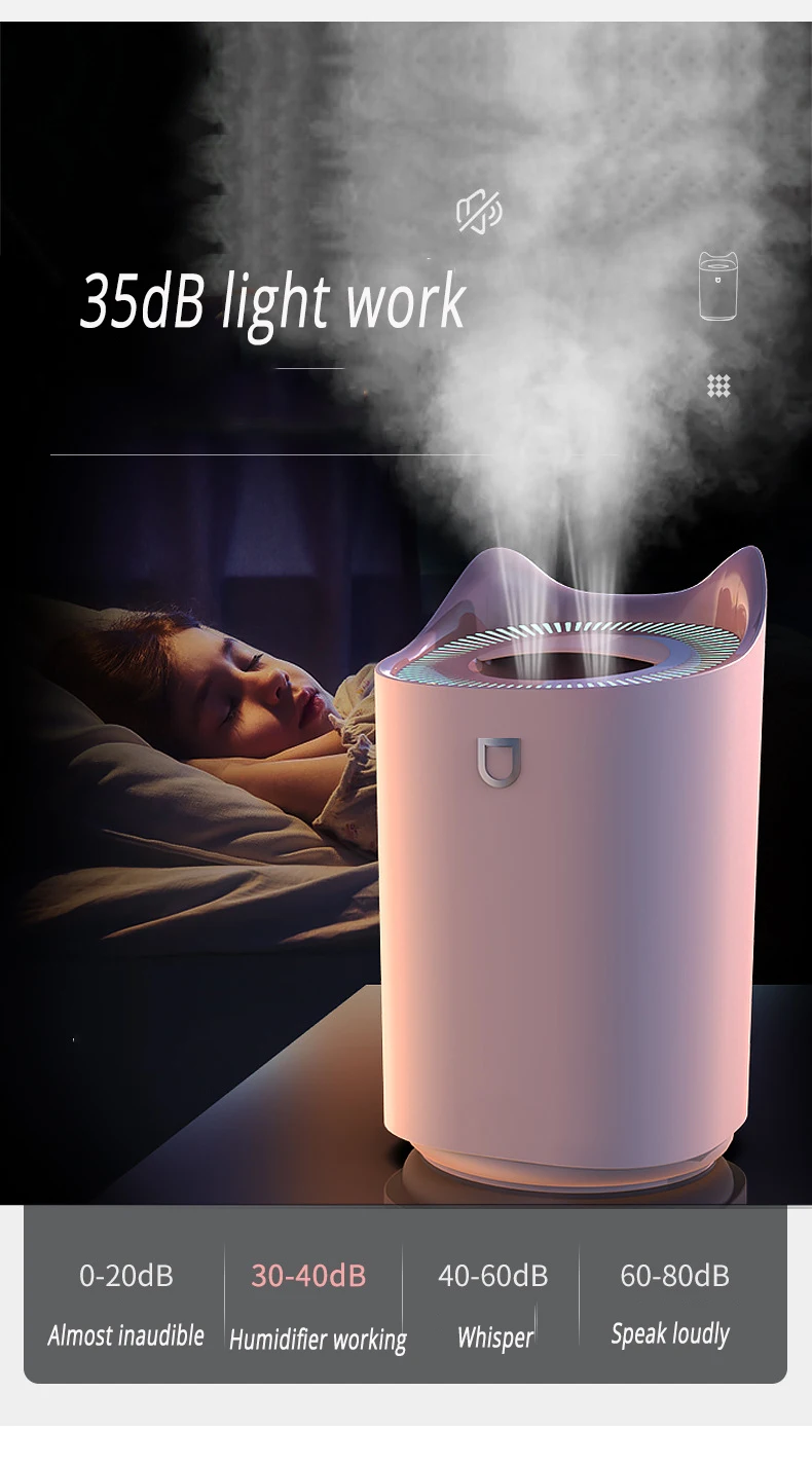 Ультразвуковой увлажнитель воздуха с двойными форсунками и распылителем в сочетании с цветной распылительной лампой: очаровательный дизайн милого котенка для домашних животных, идеально подходит для украшения вашего домашнего пространства. Портативный для дома, йоги, офиса, спа, спальни, детской комнаты и т. д. очень тихий: диффузор использует ультразвуковую технологию и бесшумно работает. Это не будет нарушать работу во время сна. Большая емкость мл. Пополнение красоты, для автомобиля, дома, офиса, Многофункциональное использование.