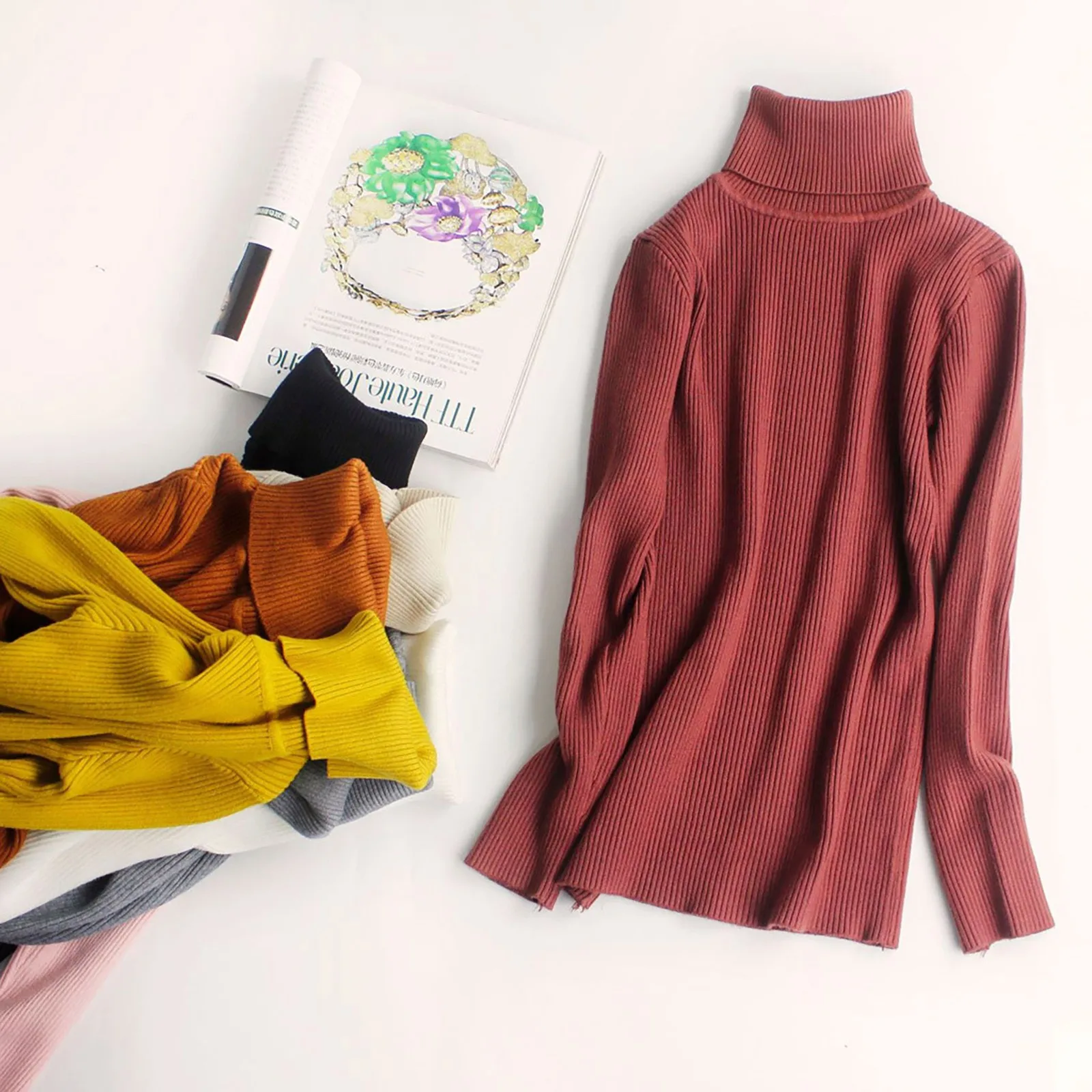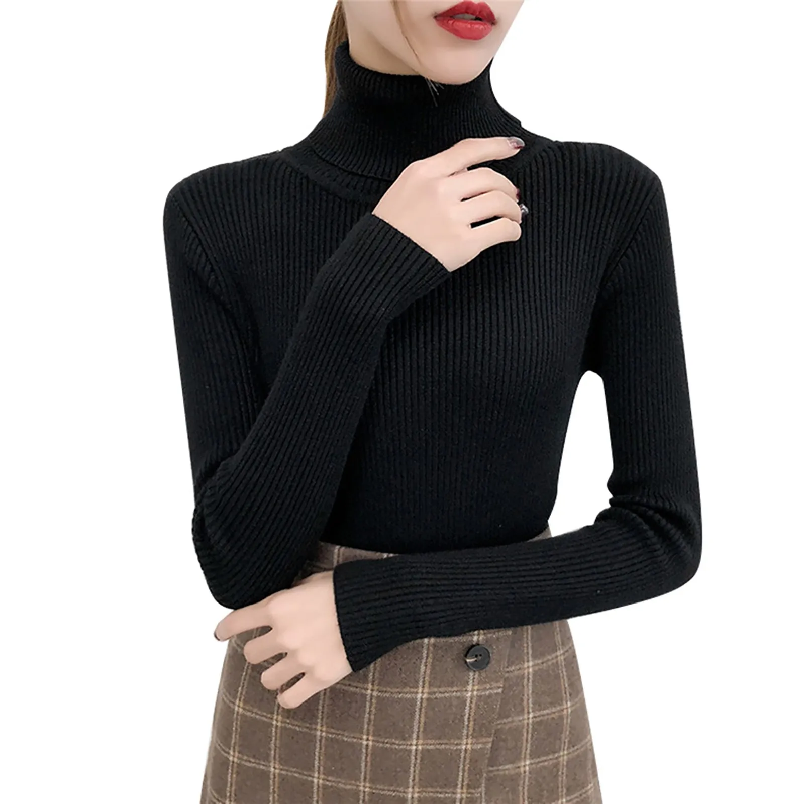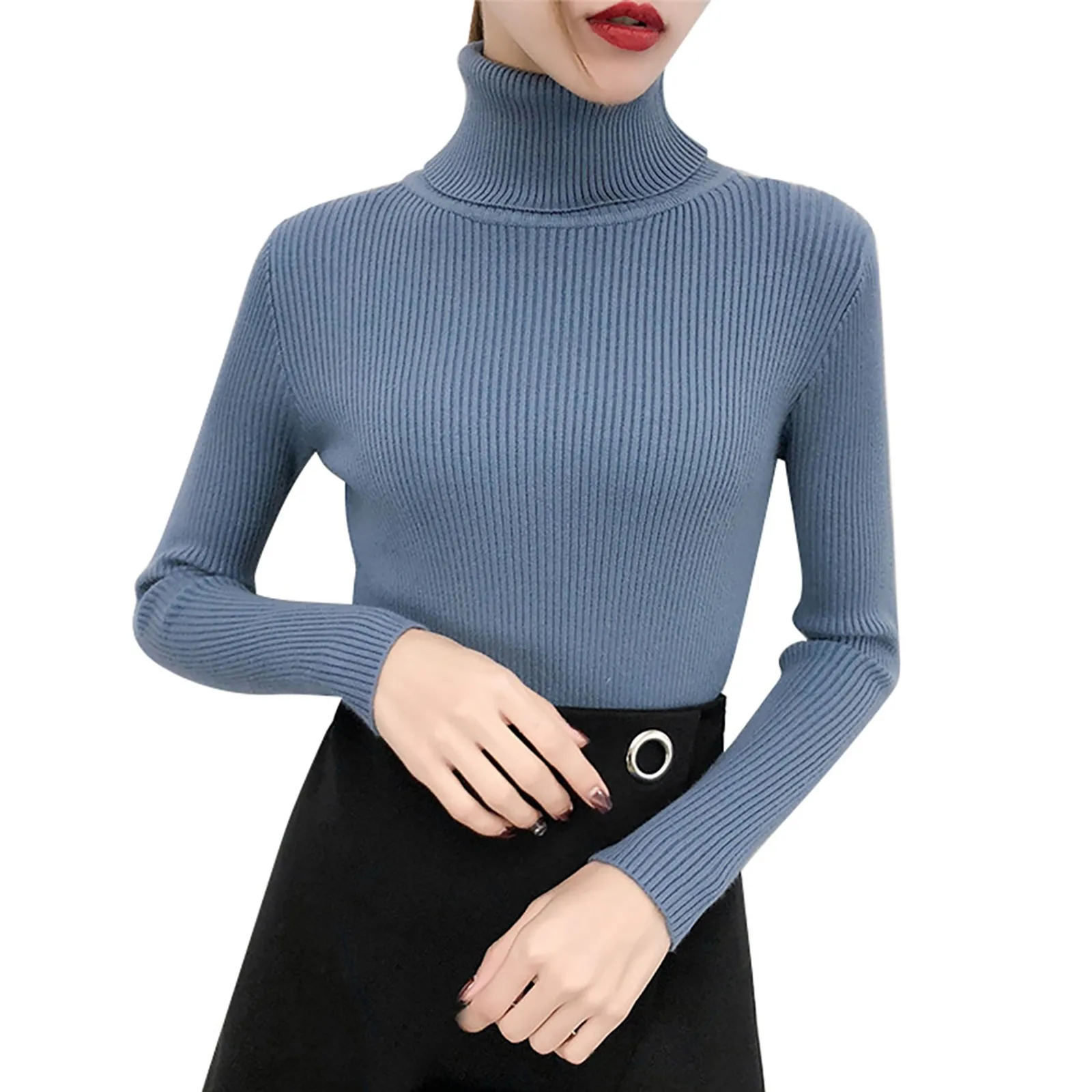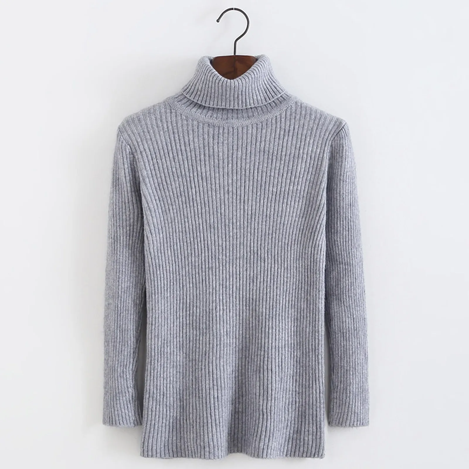 Женский модный однотонный свитер с длинным рукавом и воротником под горло, свободный трикотажный пуловер из овечьей шерсти