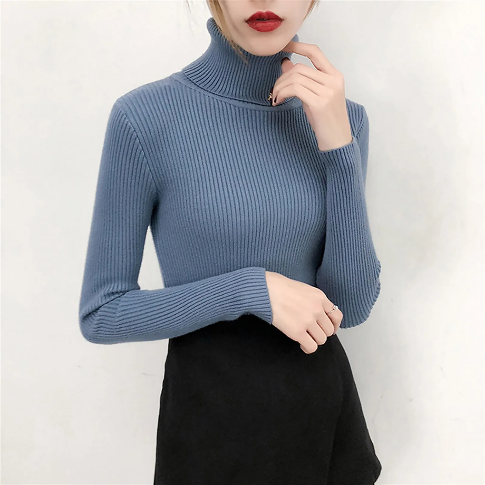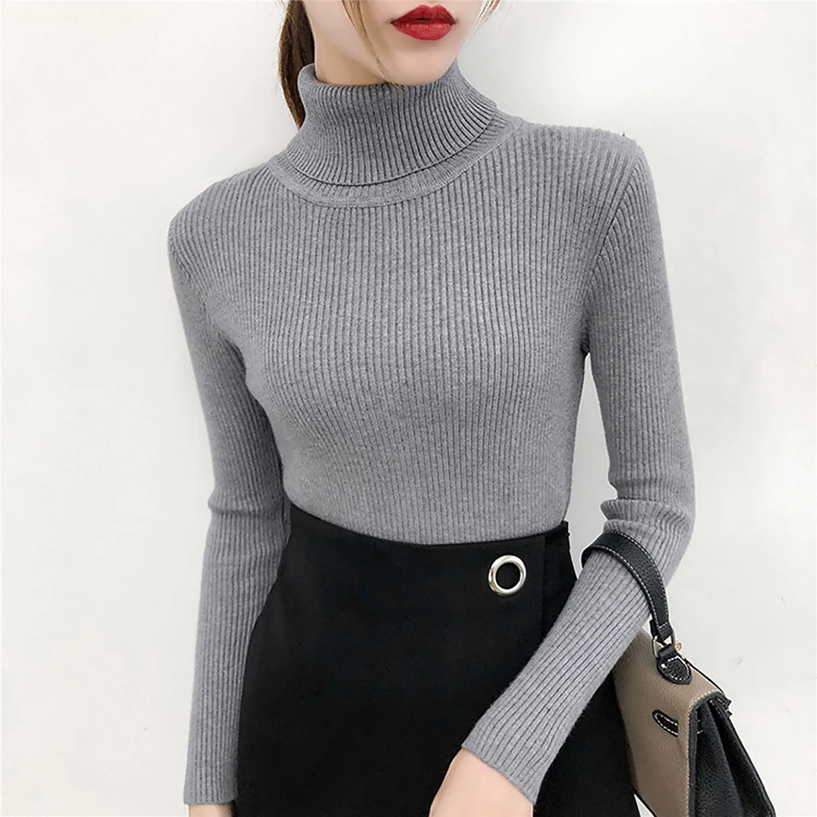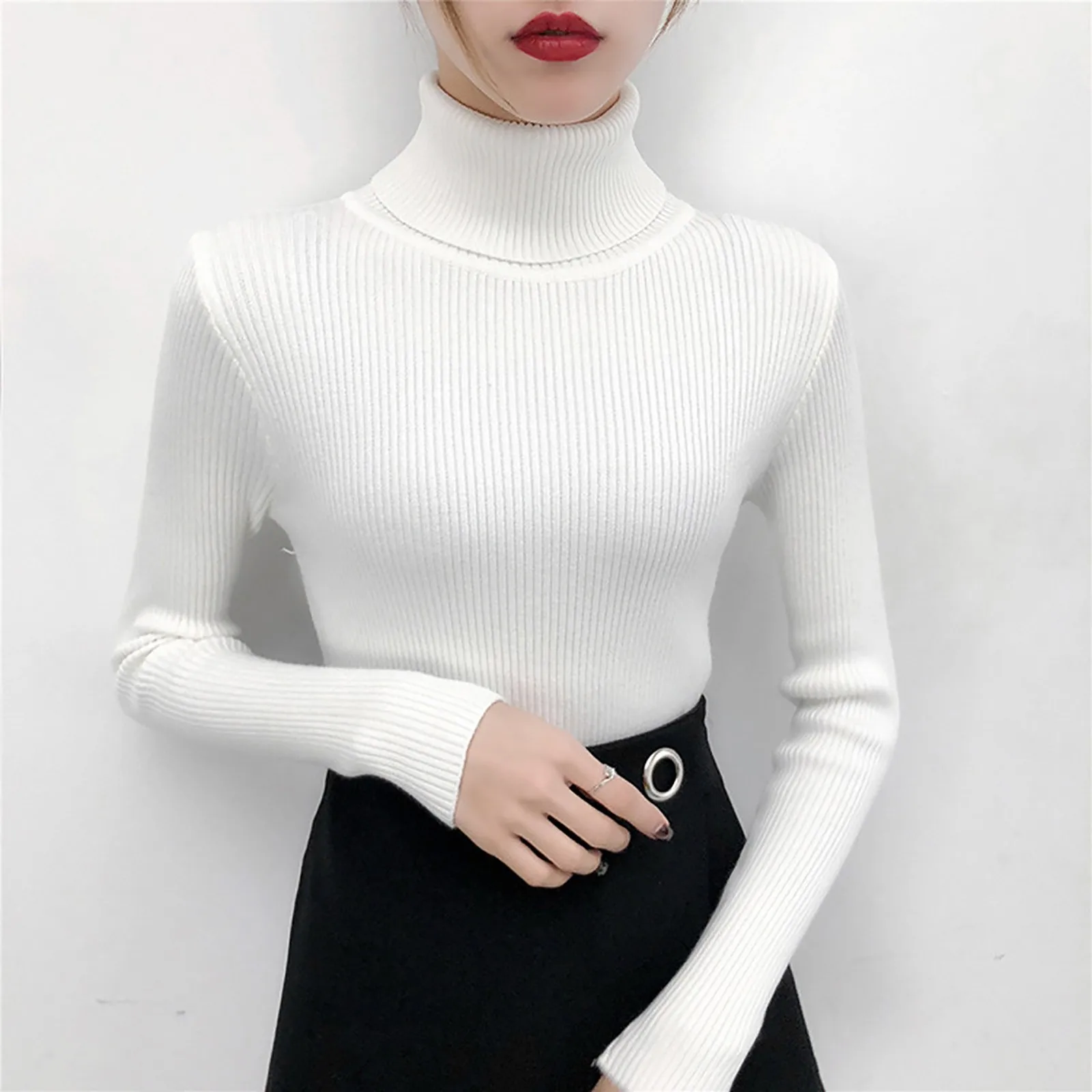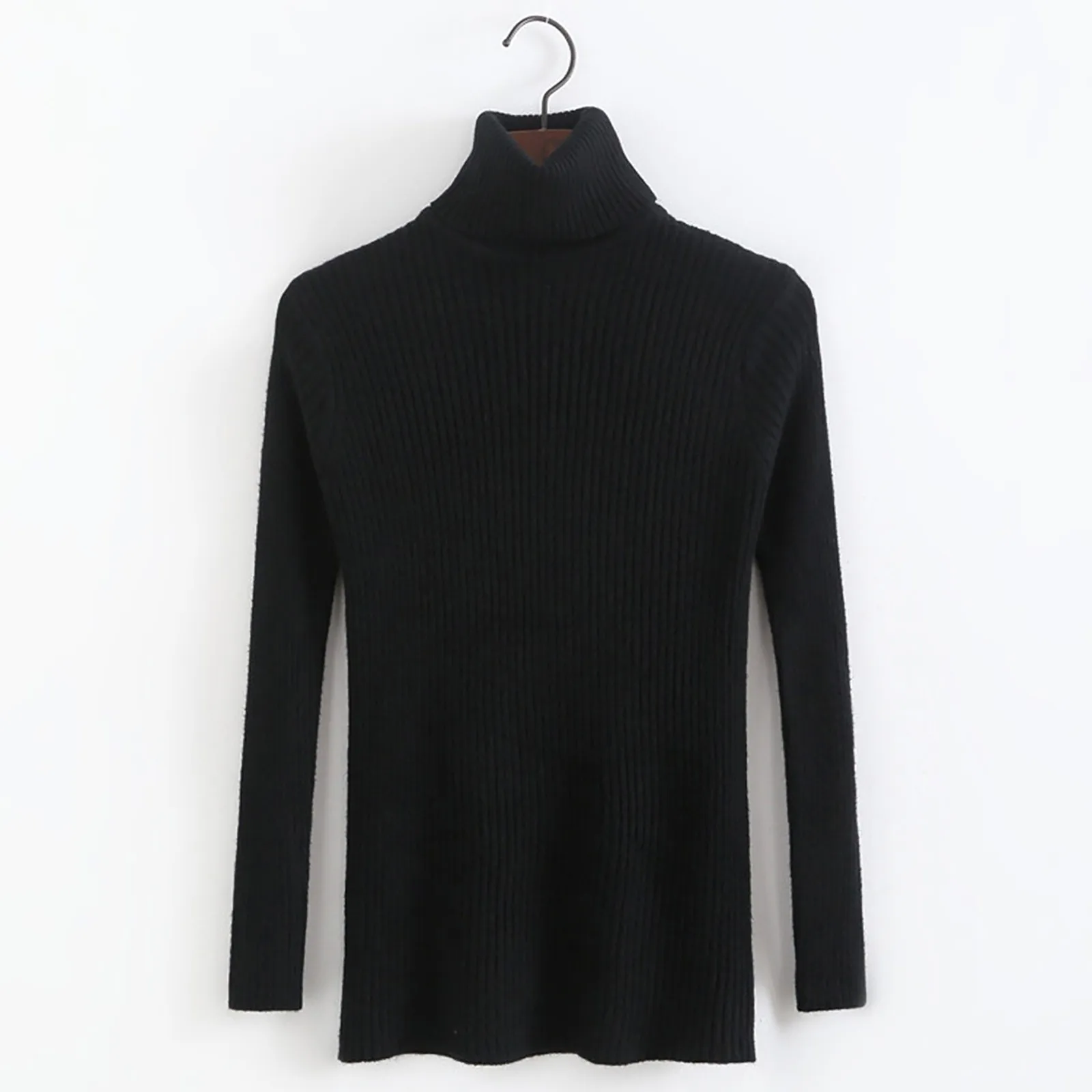 Женский модный однотонный свитер с длинным рукавом и воротником под горло, свободный трикотажный пуловер из овечьей шерсти