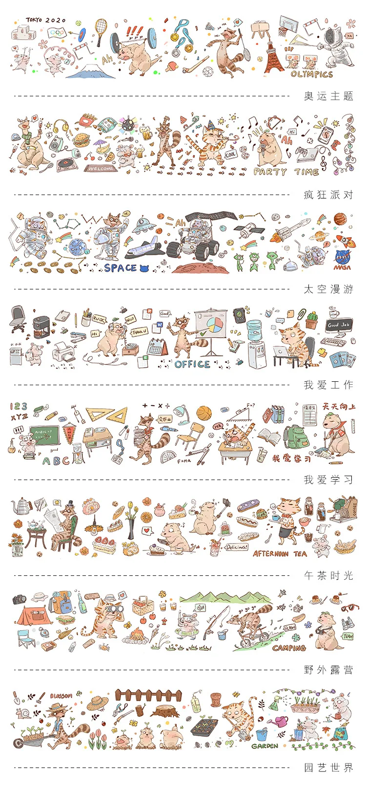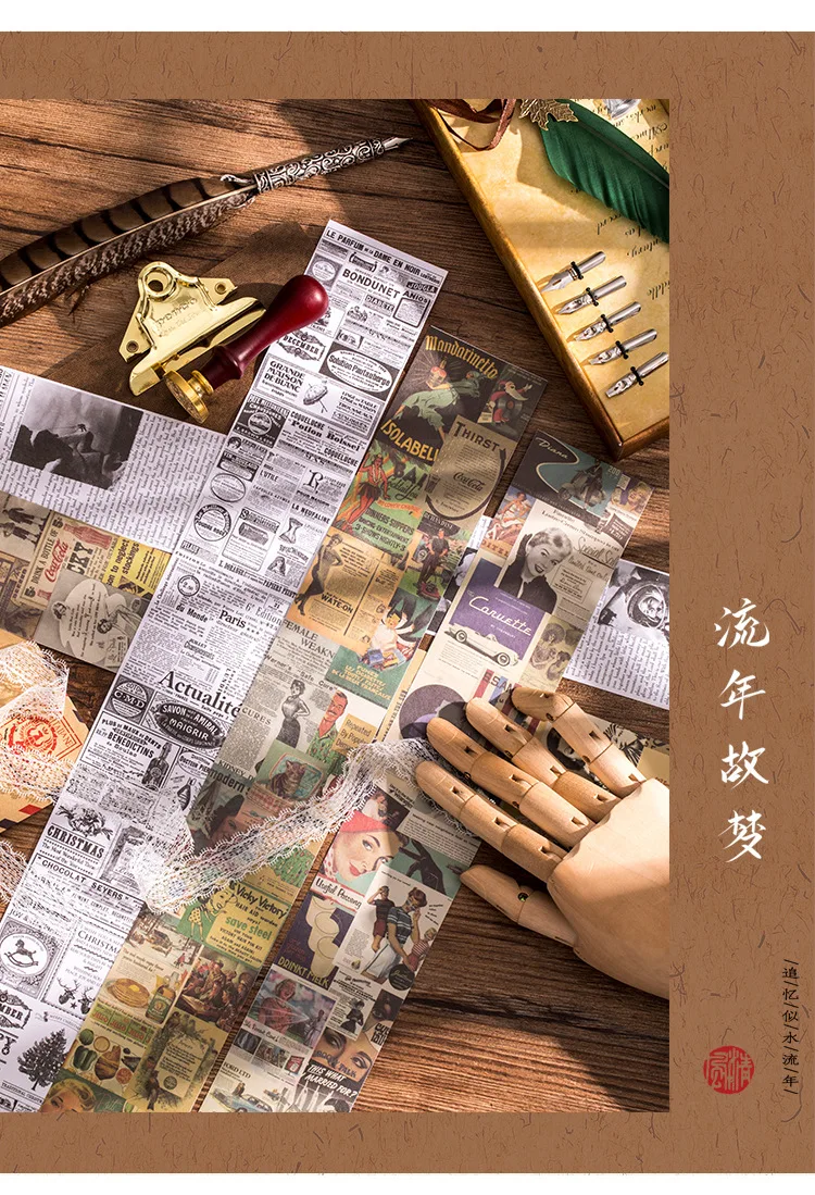 Декоративная наклейка для газеты, путешествий, животных, школьные принадлежности, широкая лента для скрапбукинга, клейкая винтажная лента