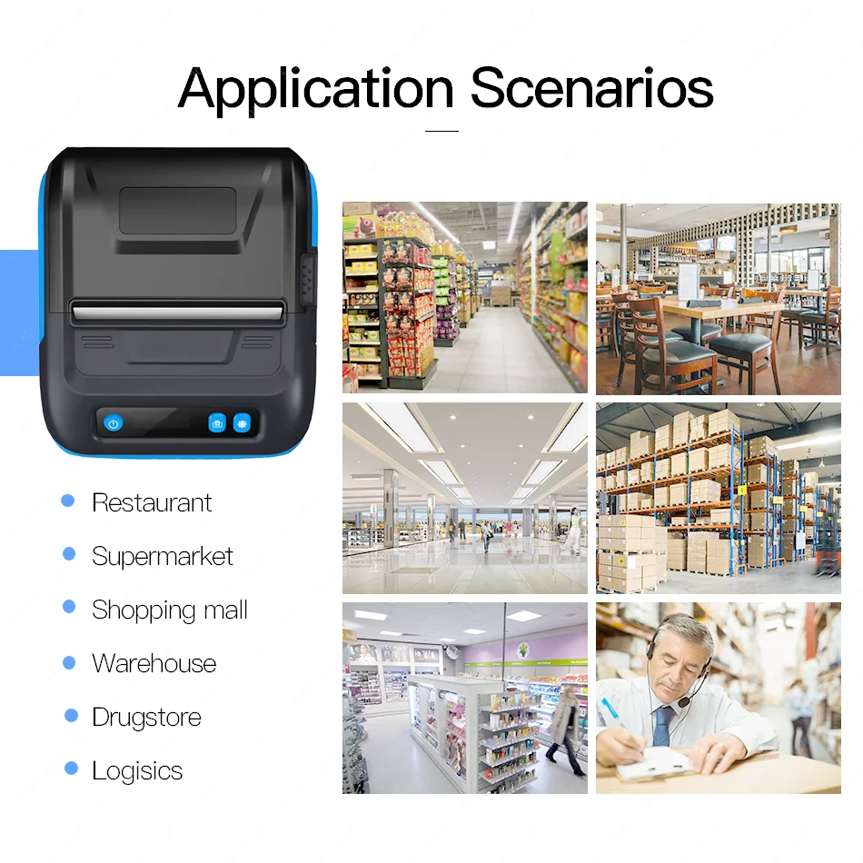 3-дюймовый 80 мм коммерческий производитель наклеек, регулируемый чековый USB-принтер с синими зубьями для офисных магазинов, экспресс-принтер для билетов