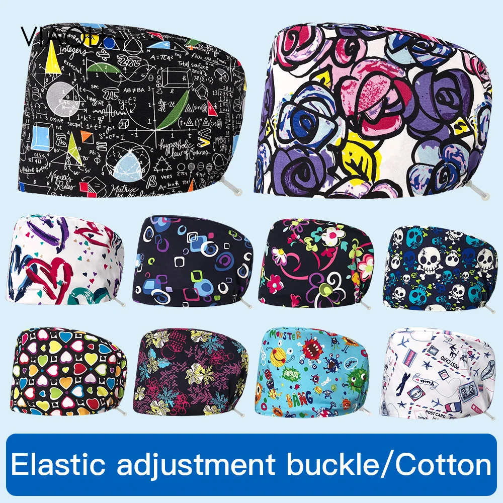 Шапка для медсестры с цветочным узором, регулируемая шапка с разным...