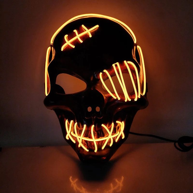 2021 модные светодиодные маски, страшные светящиеся маски для вечерние НКИ на Хэллоуин, маска для маскарада, косплея, освещение, костюм, маска, реквизит
