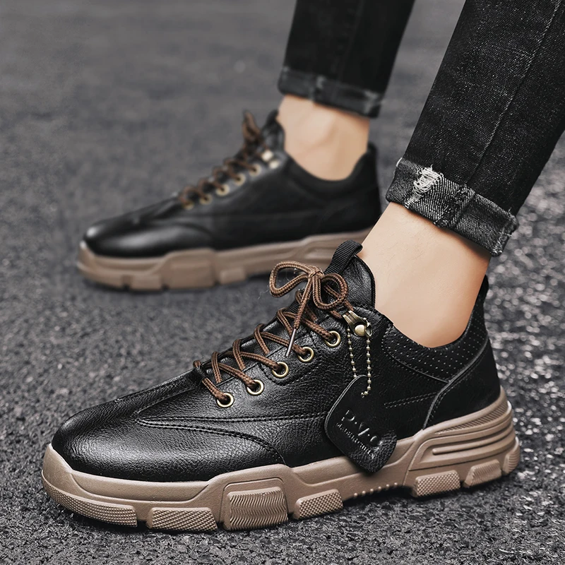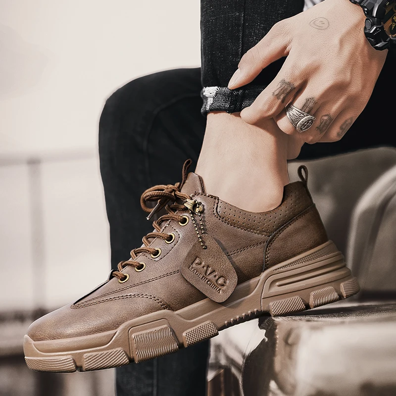Мужская повседневная обувь из свиной кожи, нескользящая, Резиновая,...