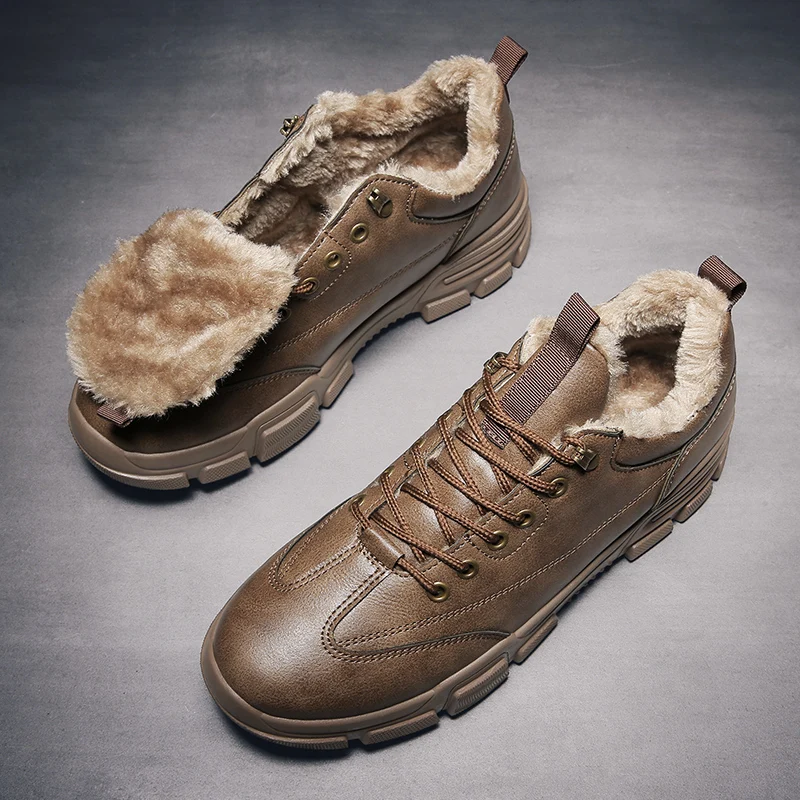 Зимняя Теплая мужская обувь с мехом, уличная Всесезонная мужская повседневная обувь на шнуровке в стиле ретро, Мужская Рабочая обувь из микрофибры высокого качества