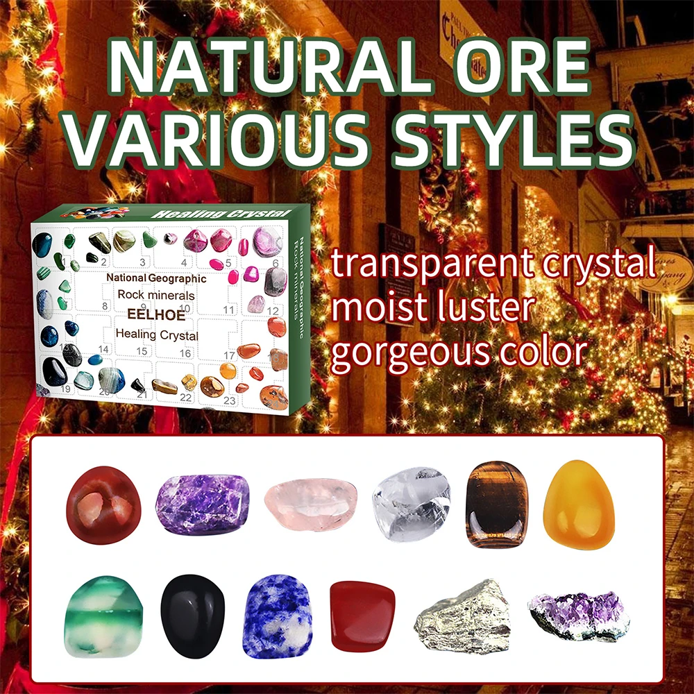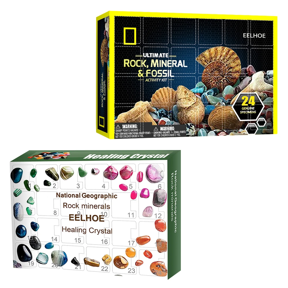 Детский календарь для нового года, календарь с обратным отсчетом, лечебный камень, геологические минеральные драгоценные камни глухая коробка, забавная образовательная игрушка, подарок 24 дня