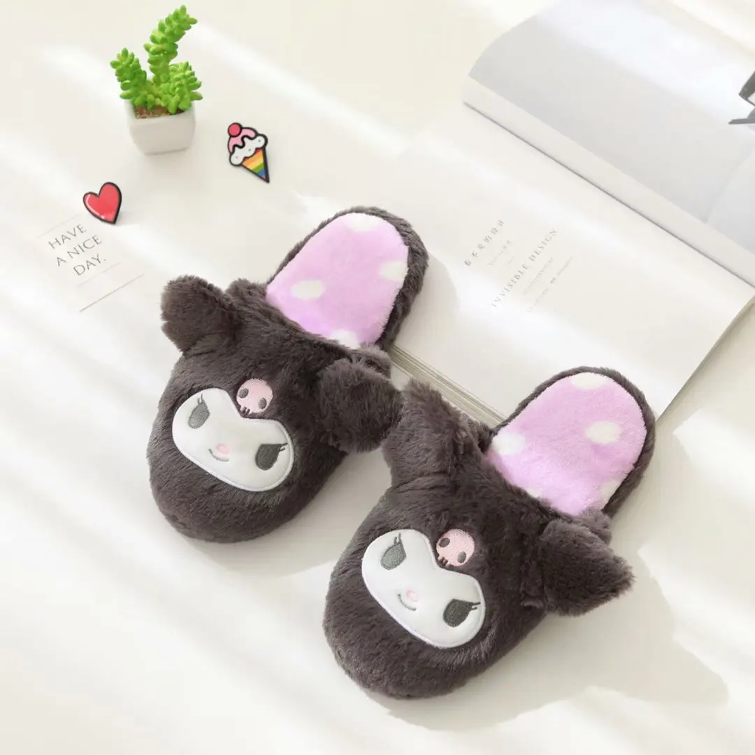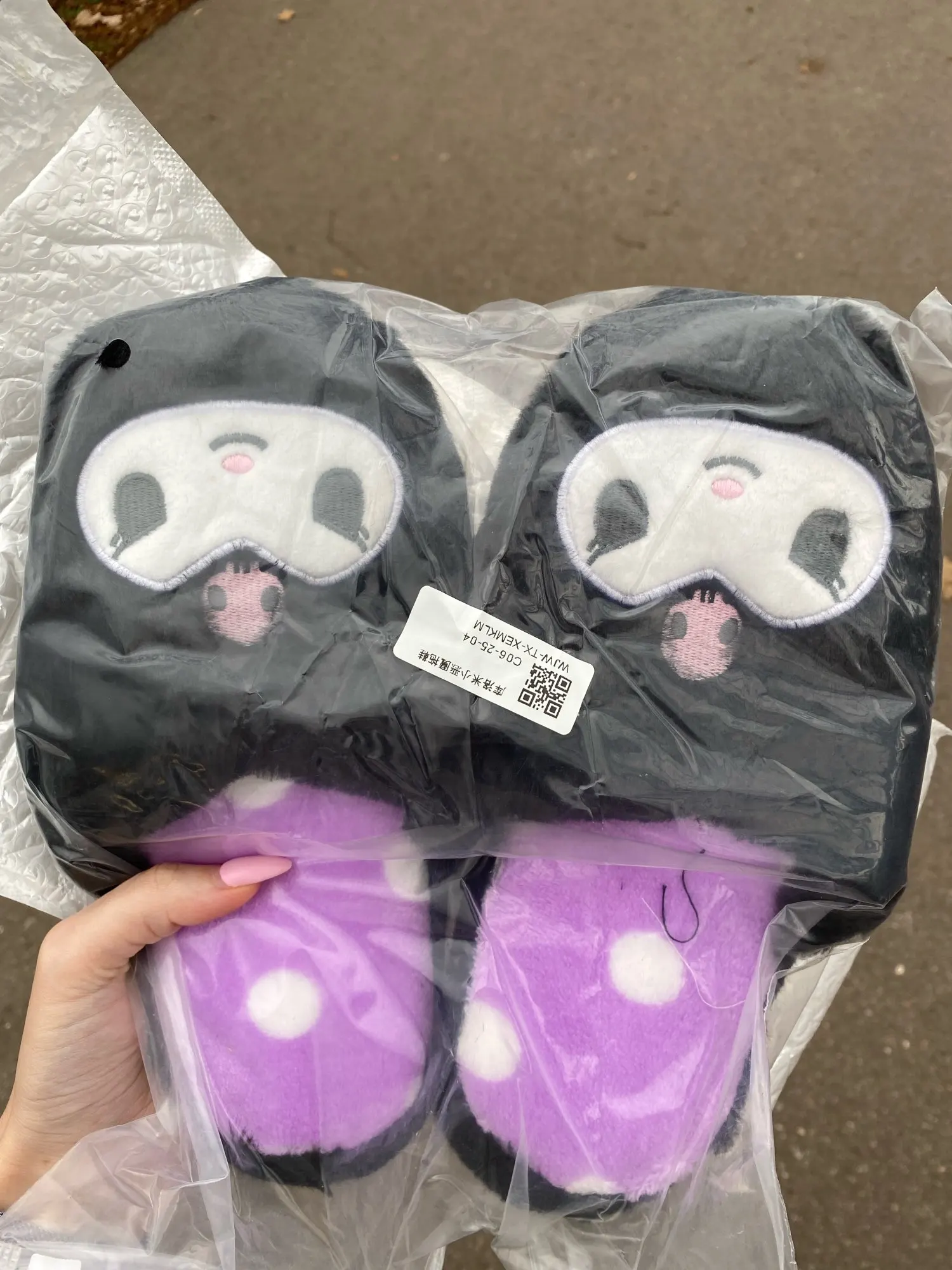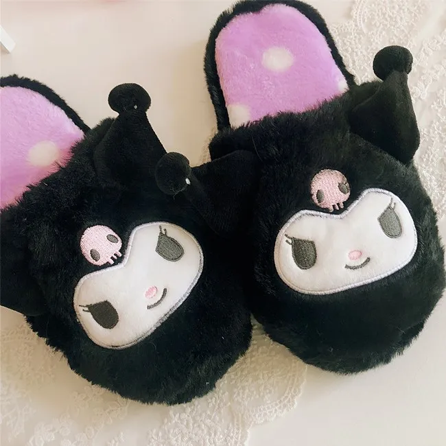 Тапочки Sanrio женские плюшевые, Мультяшные плюшевые тапки Kuromi C...