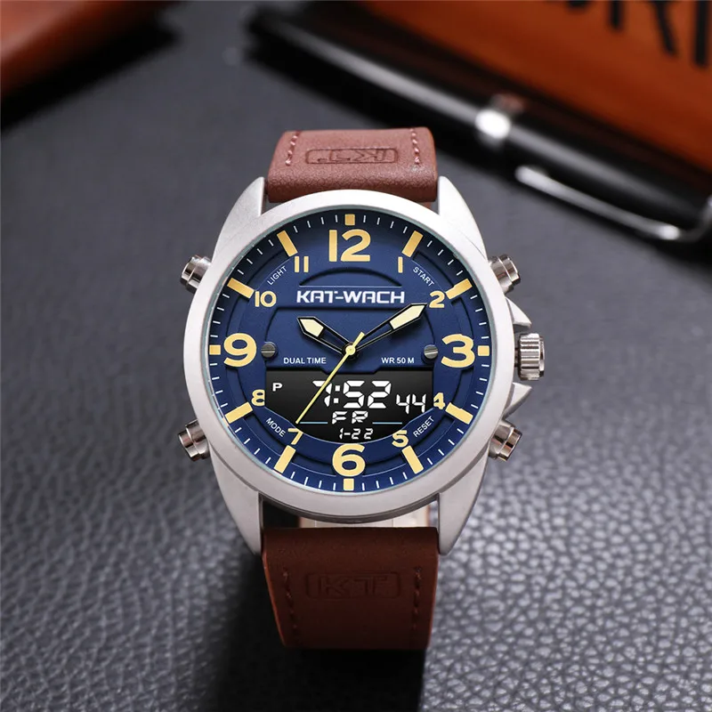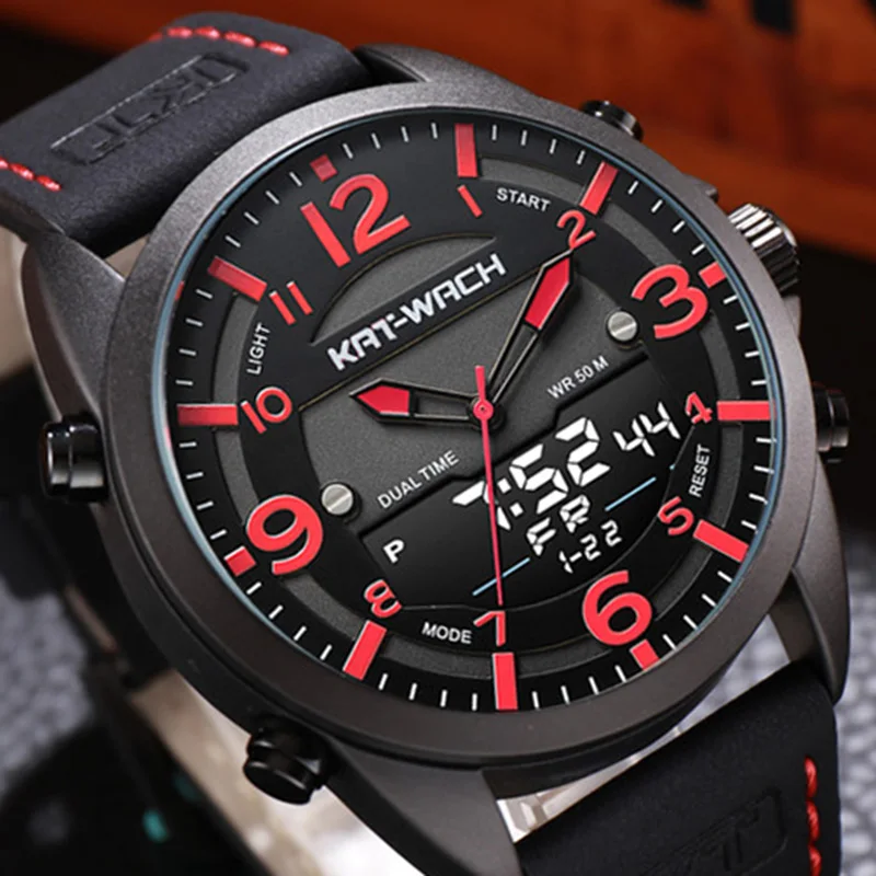 KAT-WACH 2022 мужские спортивные часы с двойным часовым поясом для плавания, Цифровые кварцевые наручные часы, водонепроницаемые военные часы 50 м, мужские часы