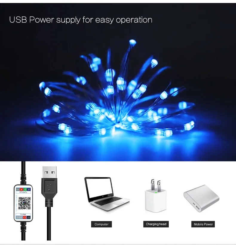 Гирлянда светодиодная с Bluetooth, 20 м, USB
