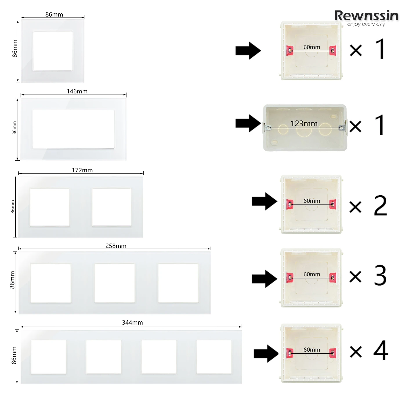 Тип товара: переключатель/модуль розетки/рамкаЦвет: белыйМатериал панели: стеклоНоминальное напряжение: 110-250 ВУниверсальный/Британский модуль Номинальный ток: 13AНоминальный ток usb-модуля: около 2,1 А (медленная зарядка)RJ45 / Network / HDMI-совместимый и т. Д. Номинальный ток: слабый токРазмер оправы:1BL: 86 мм * 86 мм2BL: 172 мм * 86 мм3BL: 258 мм * 86 мм4BL: 344 мм * 86 мм146-BL: 146 мм * 86 мм