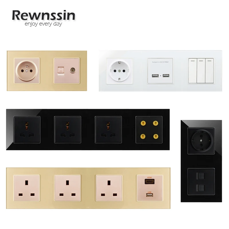 DIY Бесплатная комбинированная розетка из закаленного стекла, пластина, переключатель питания, двойные USB-порты, стандартная розетка для Великобритании, универсальная 35-контактная розетка