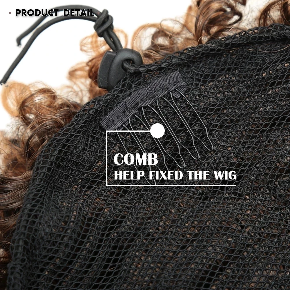 Афро кудрявые вьющиеся волосы для конского хвоста с челкой афро-аме...