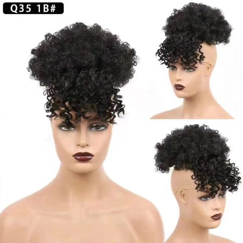 Афро пучок с челкой хвост накладные волосы афро-американский коротк...