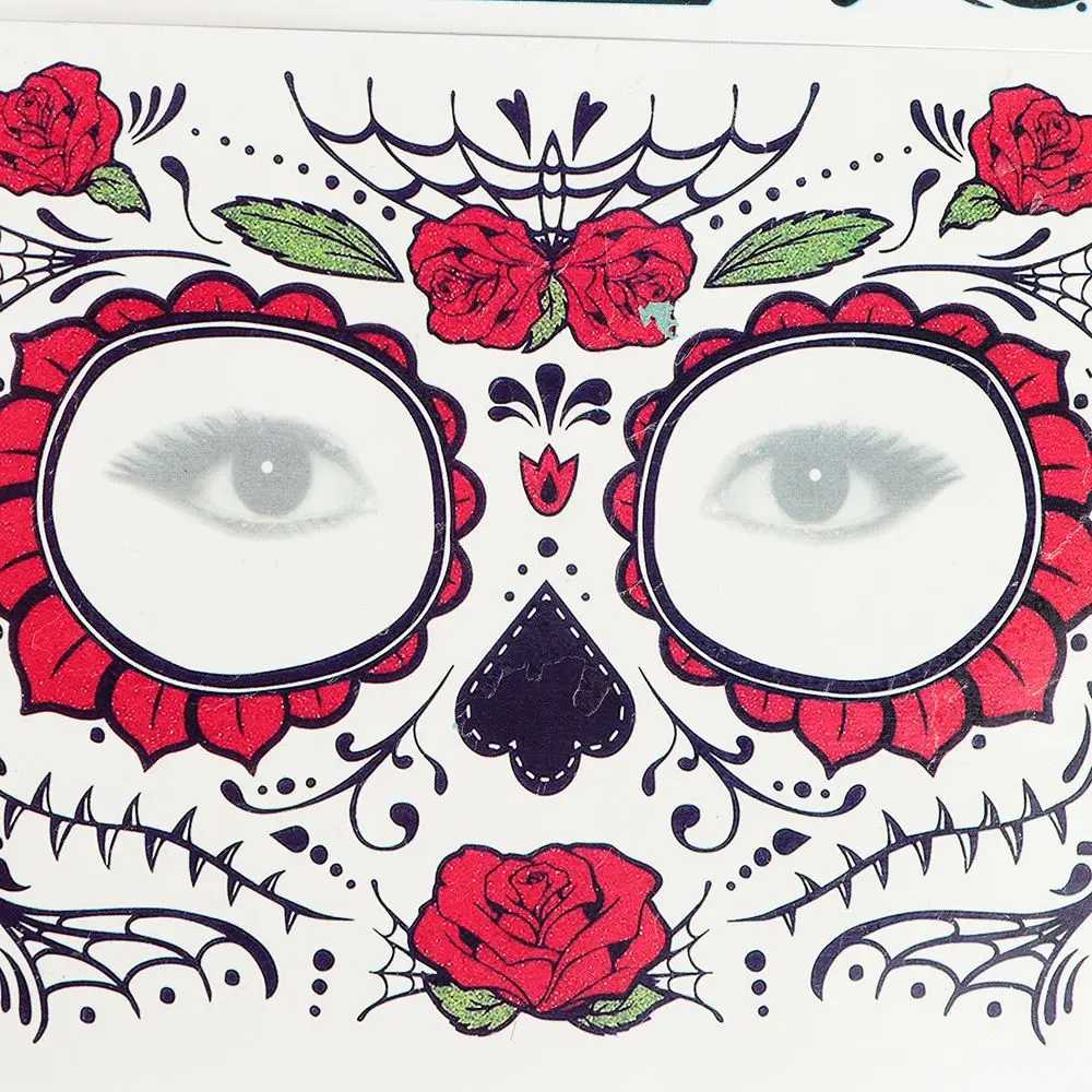 Временные тату-наклейки на Хэллоуин, Череп, лицо, наклейка для лица, водонепроницаемый макияж для лица, День мертвых