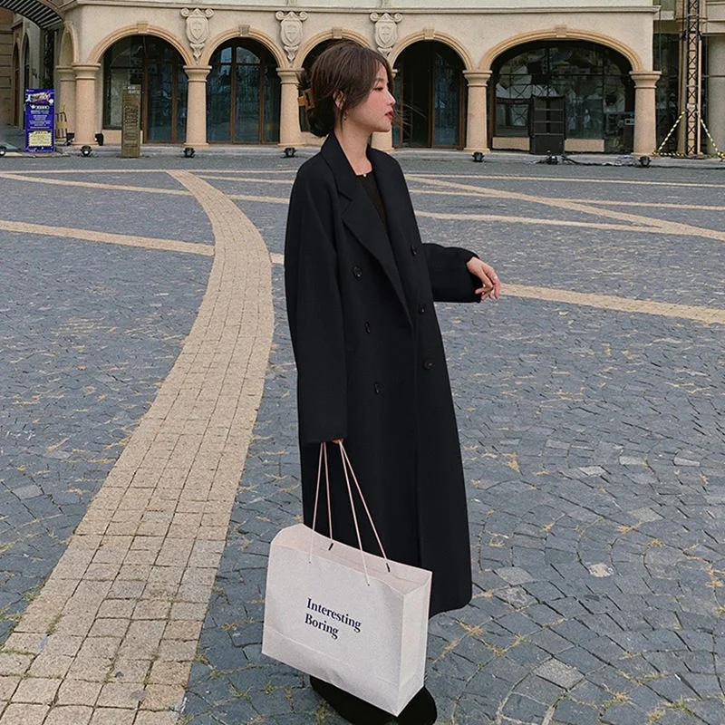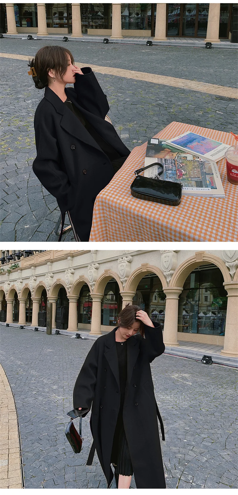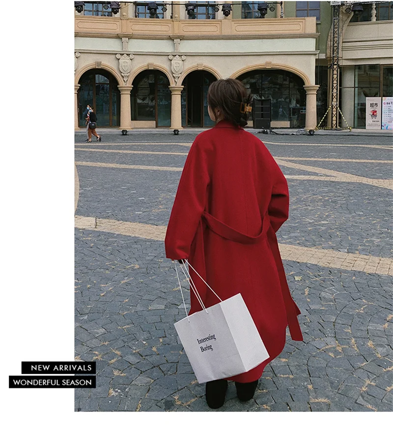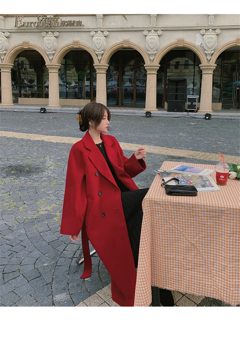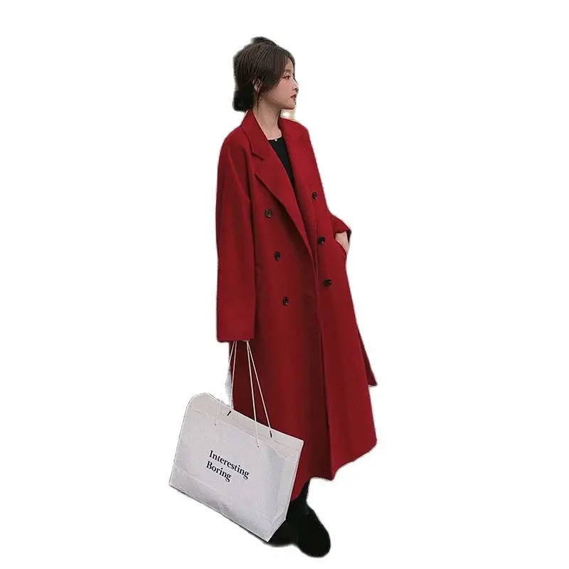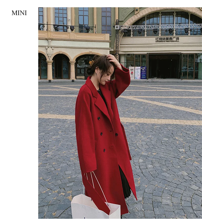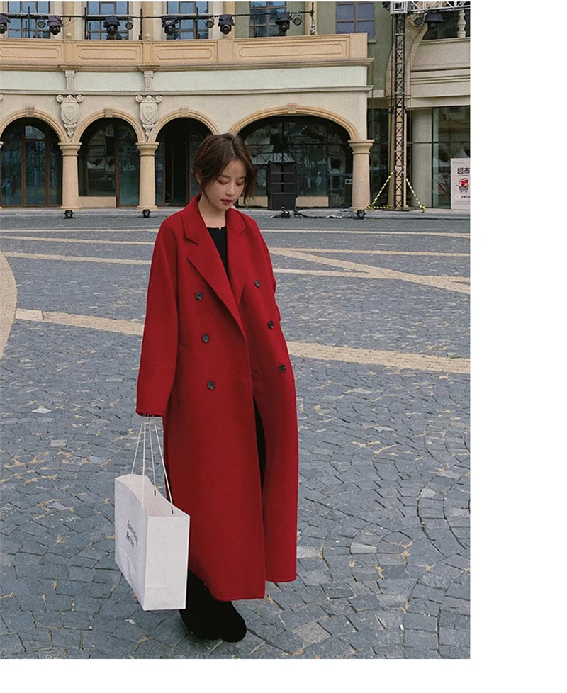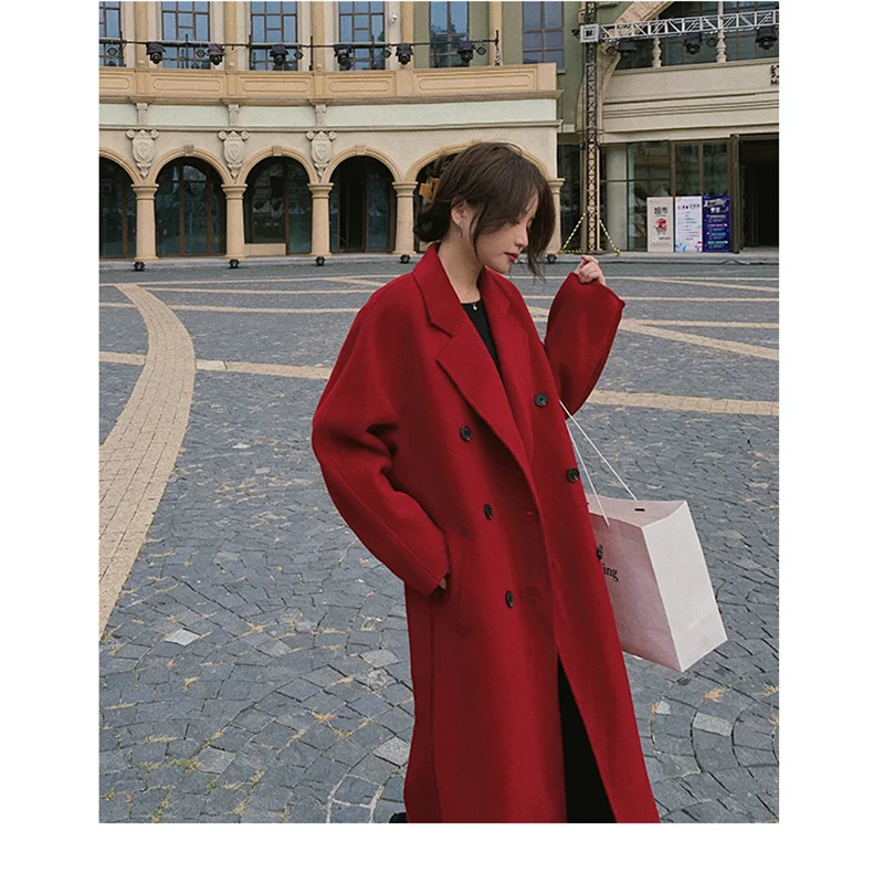 Красный шерстяной Блейзер, Женское пальто средней длины на осень и зиму, новинка 2021, темпераментное плотное шерстяное пальто, женские пальто d87