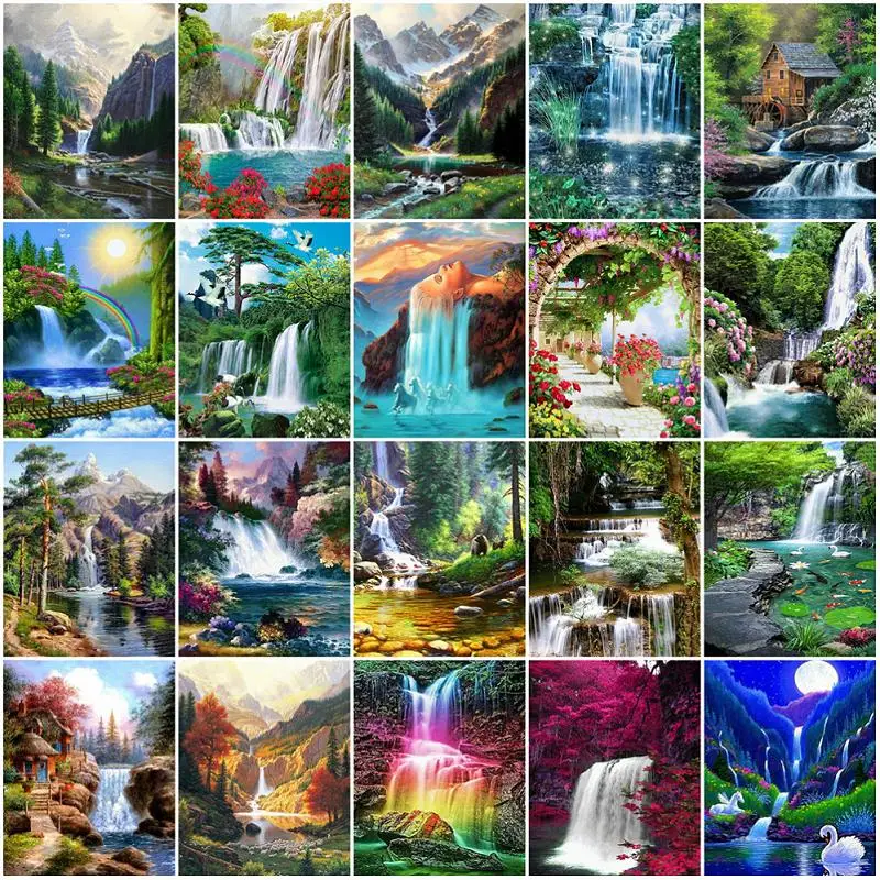 Картина маслом по номерам набор водопад пейзаж DIY рамка на холсте картина по номерам домашний декор pintura por natimeros