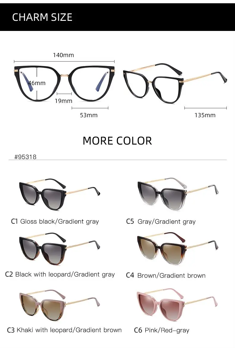 Солнцезащитные очки кошачий глаз женские, магнитные поляризационные, с клипсой, при близорукости, по рецепту, 2021