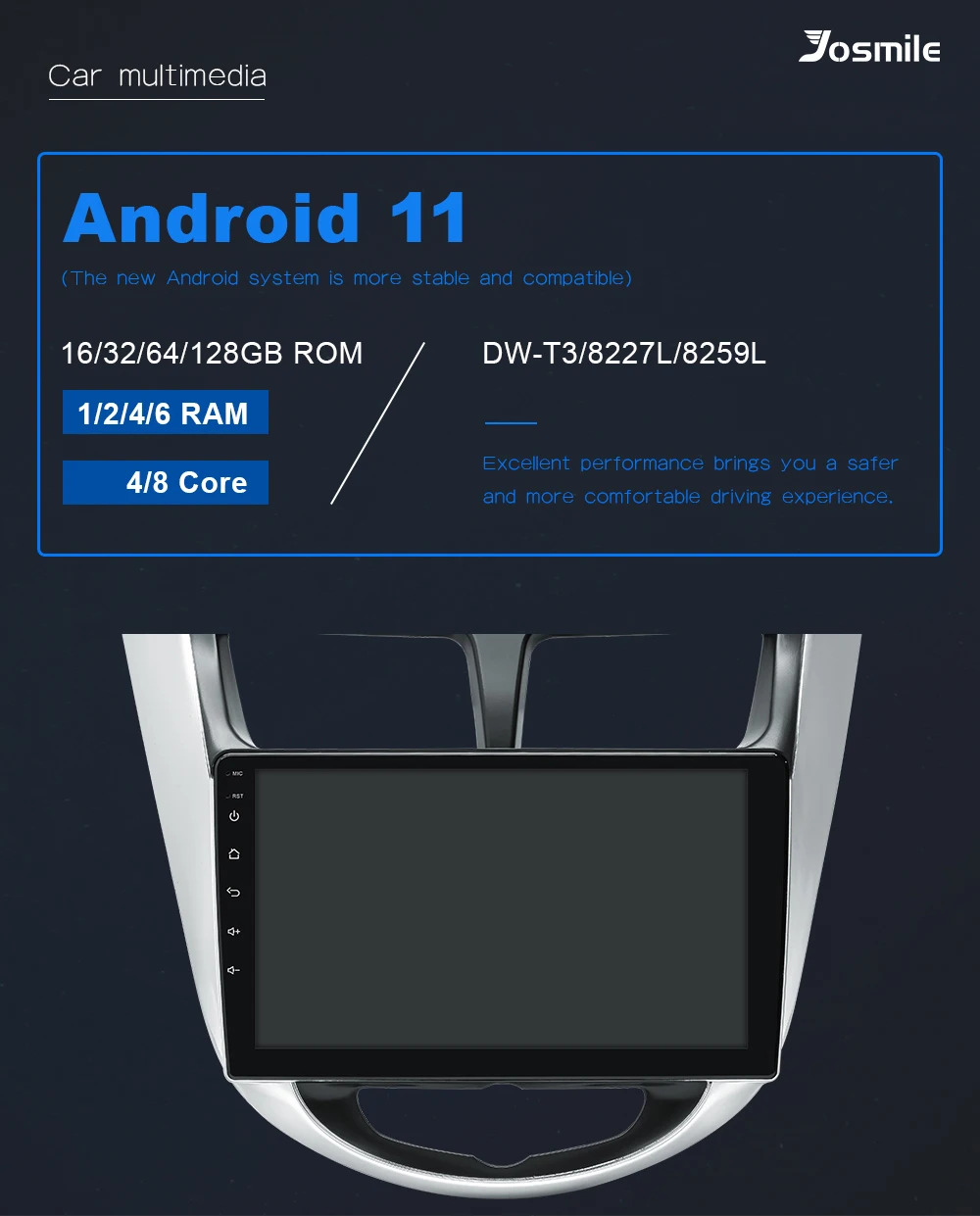 Автомагнитола 8 ядер, 2 din, Android 11, для Hyundai Solaris 2010 -2016, мультимедийный плеер, GPS-навигатор, стерео аудио, головное устройство Carplay