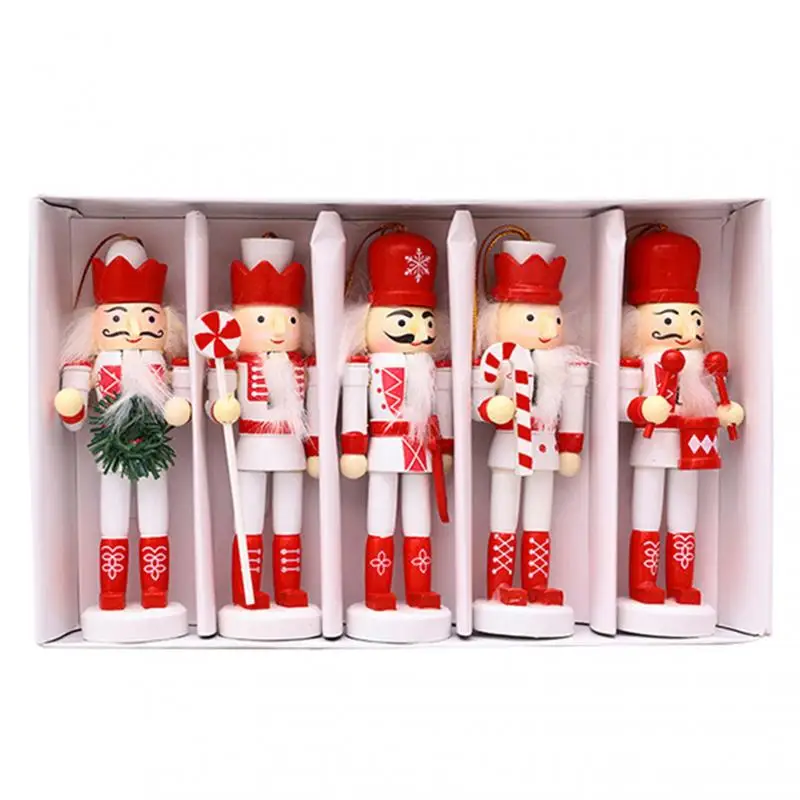 Деревянные Подвески для новогодней елки в виде щелкунчика, 5 шт.