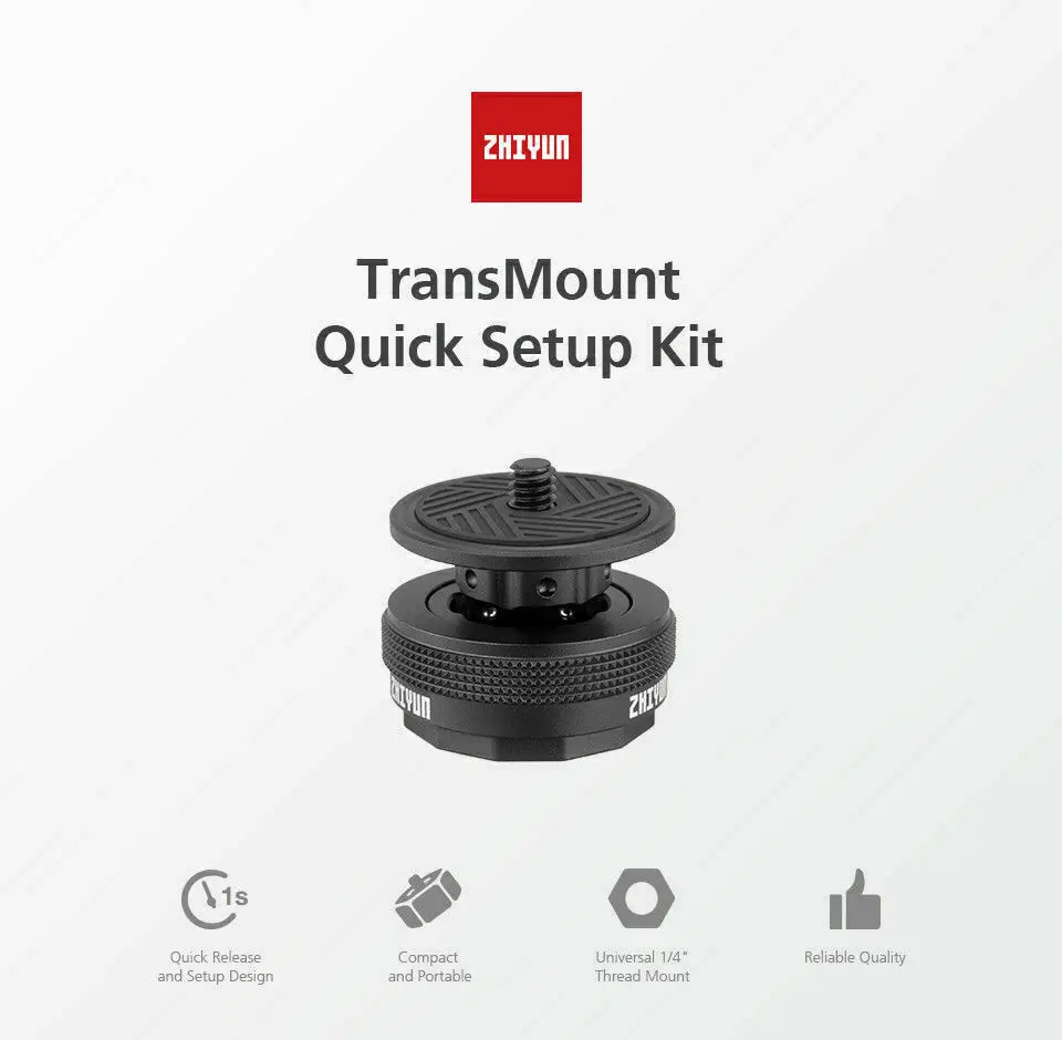 Набор быстрой настройки, Первоначально созданный ZHIYUN, позволяет быстро отпустить и настроить штатив/монопод на Стабилизатор вместо завинчивания. Комплект позволяет переключаться между вертикальным и нижним режимами за секунду.