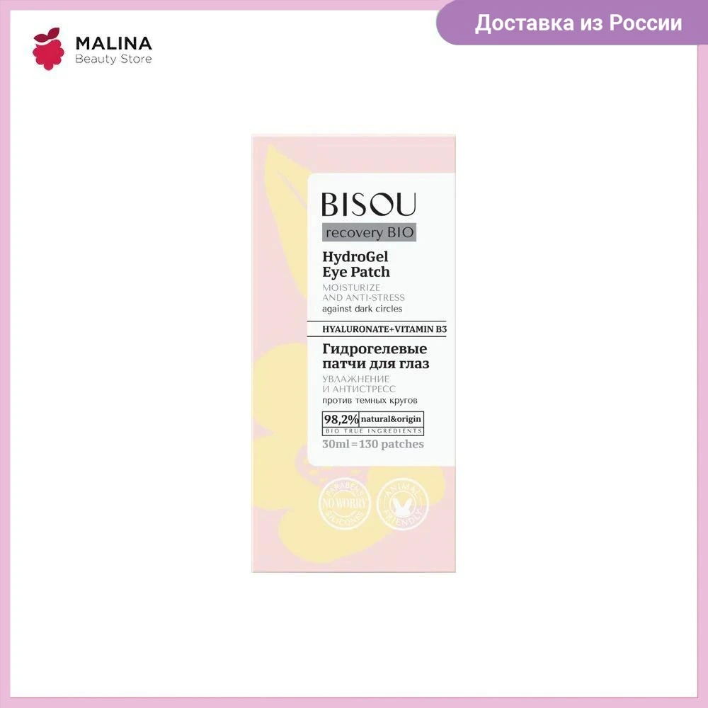 Гидрогелевые патчи для глаз BISOU, увлажнение и антистресс, против темных кругов, 30 мл