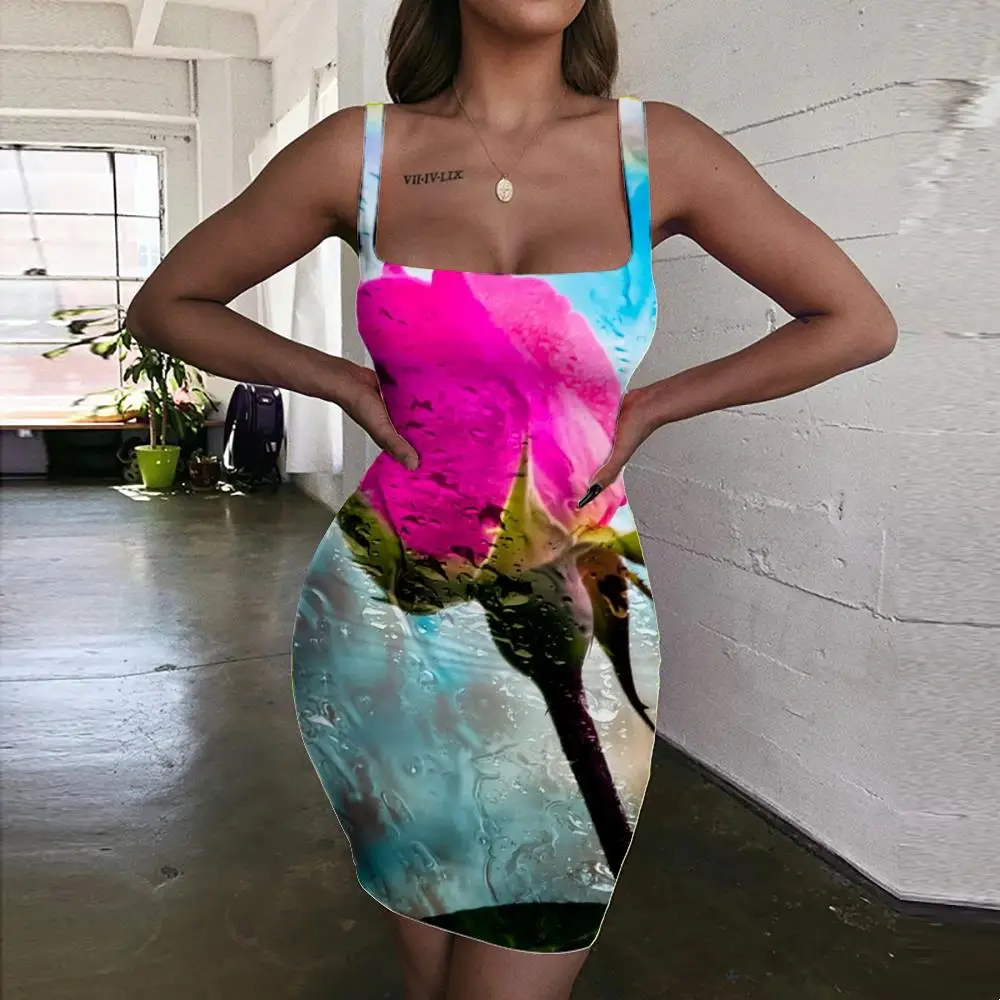 Женское облегающее платье KYKU, летнее пляжное платье с 3D-принтом ...