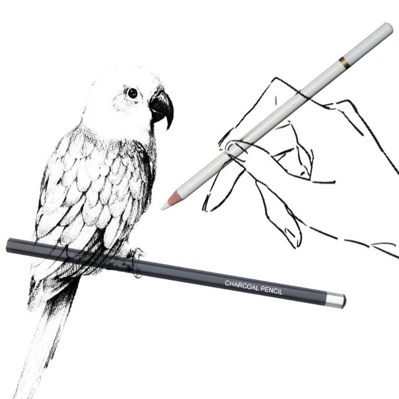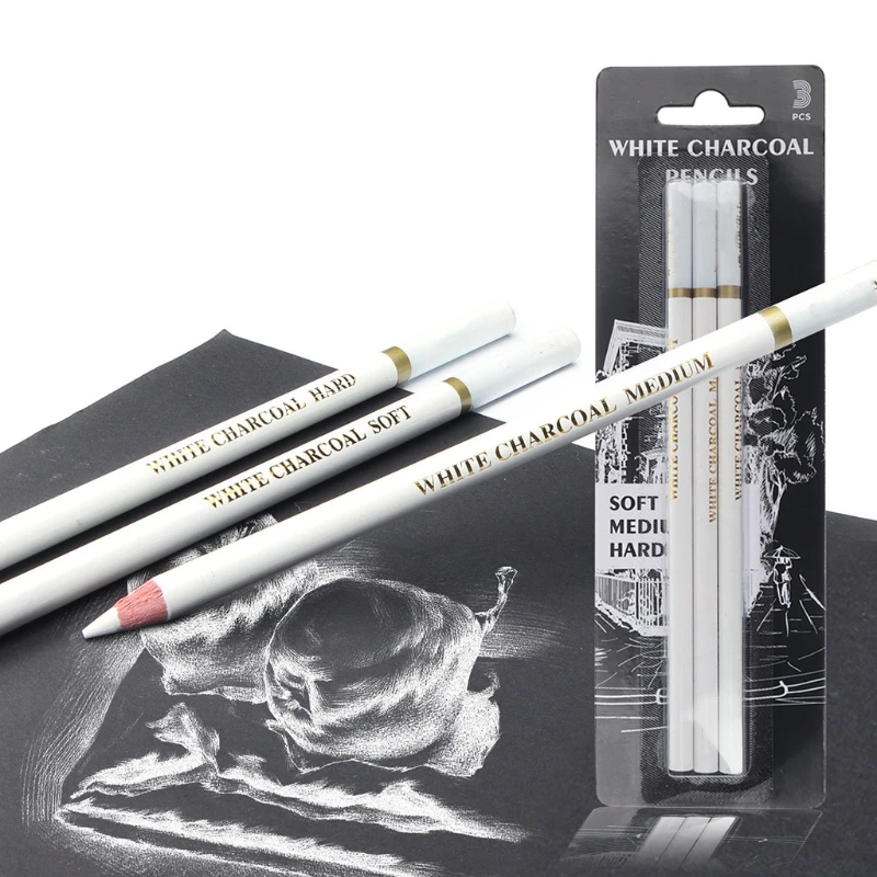 3 шт.упак. профессиональные белые карандаши с древесным углем, набо...