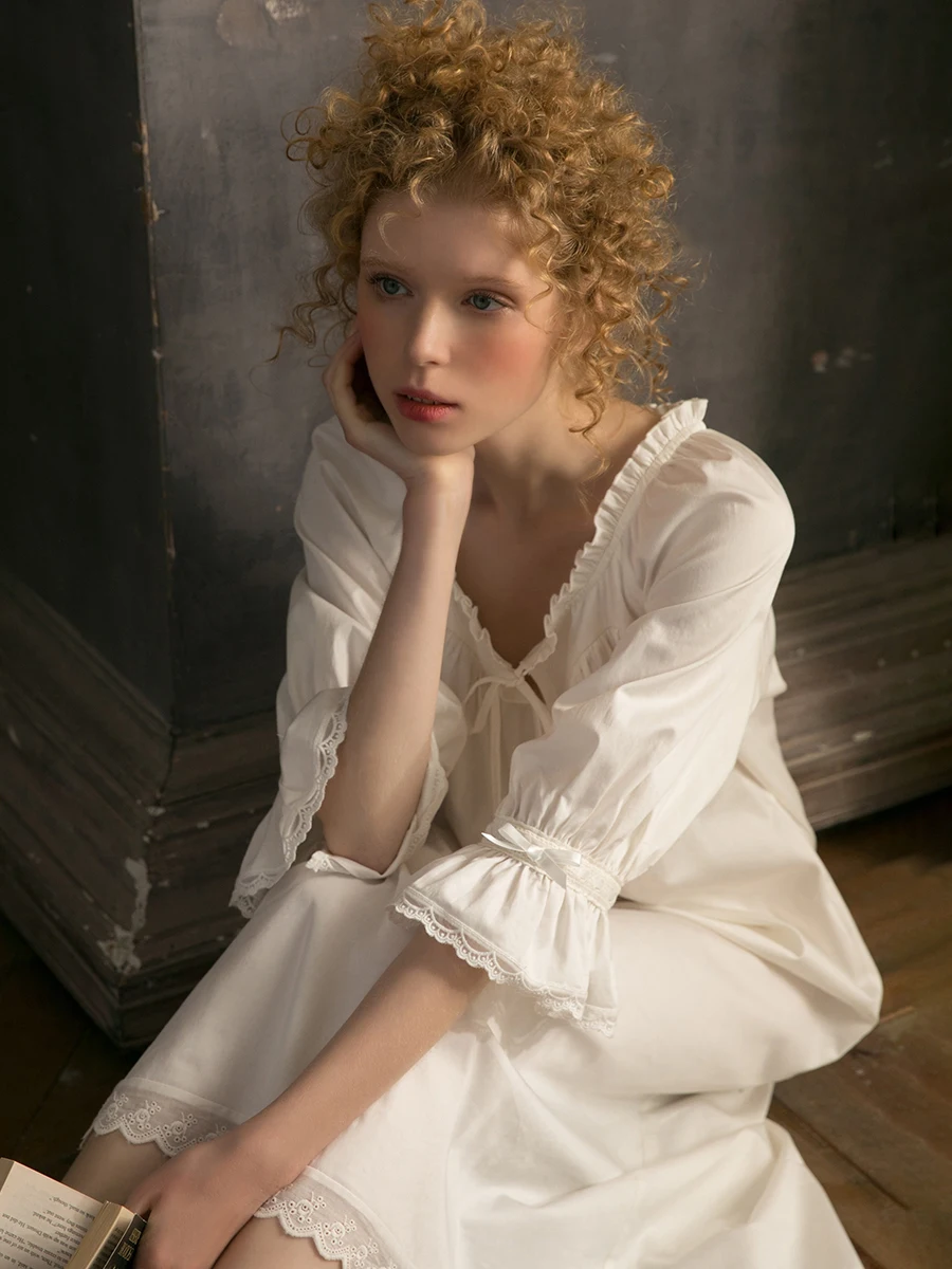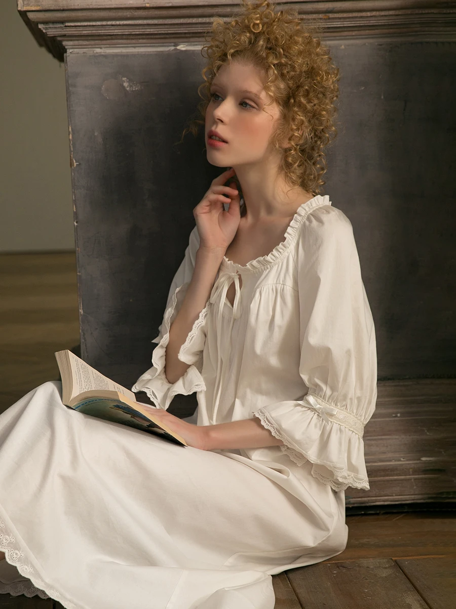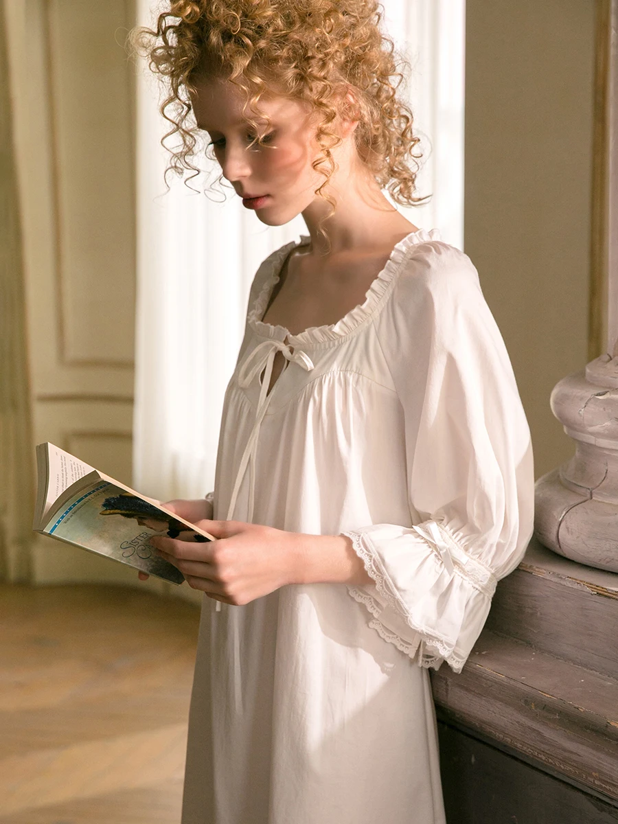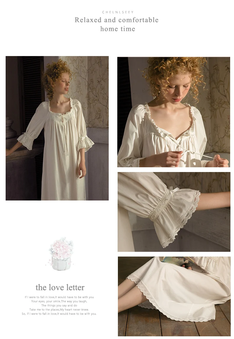Женская хлопковая ночная рубашка Милая Пижама белая ночная рубашка Весна-Осень Повседневная Модная хлопковая одежда для сна оригинал