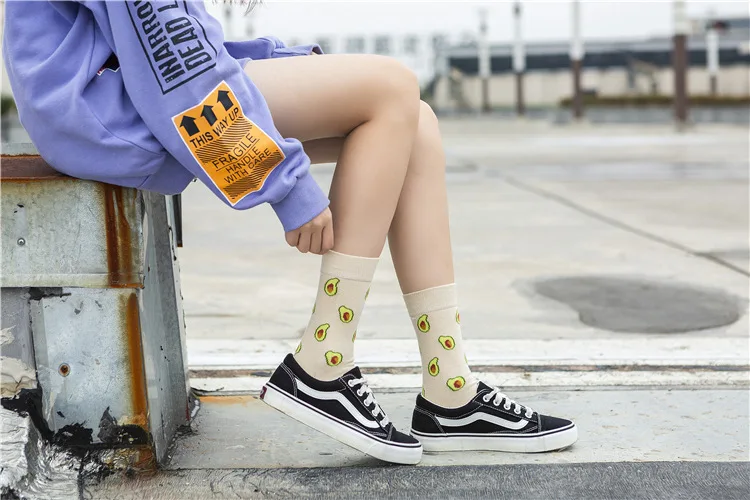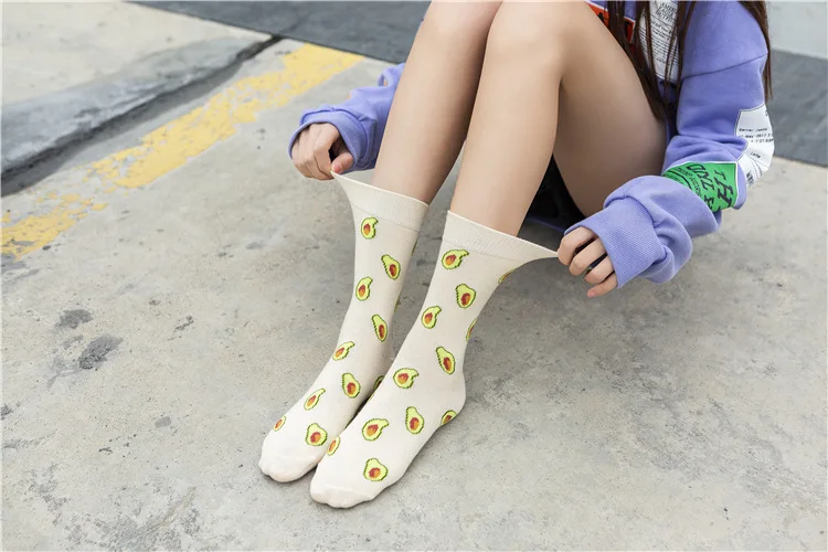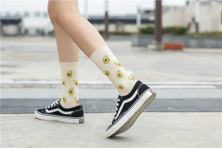 Носки женские носки Забавные милые Мультяшные Фрукты Банан авокадо ...